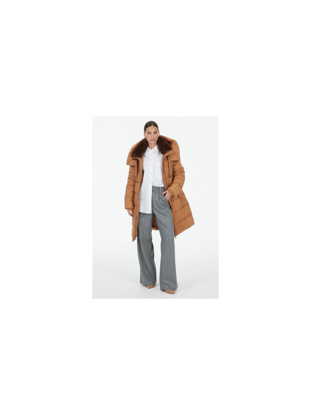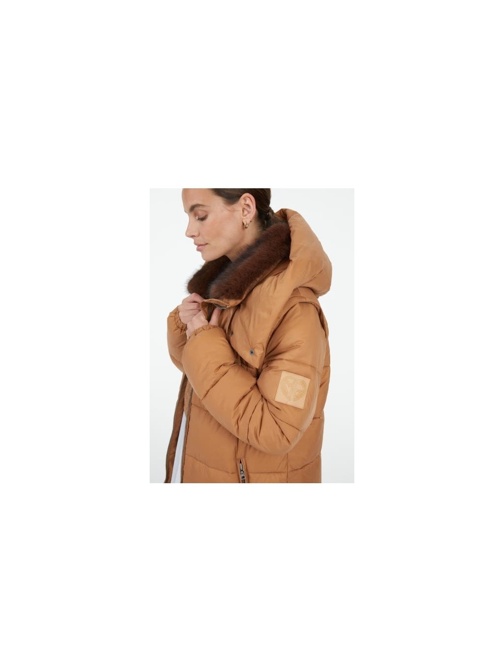 Tato dlouhá prošívaná bunda z vodoodpudivého outdoorového materiálu nabízí spolehlivou ochranu v chladném počasí. Kapuce a teplá vnitřní podšívka poskytují dodatečné pohodlí, zatímco lemované kapsy a kapsy na zip nabízejí praktické detaily. Odnímatelný lem z umělé kožešiny stylově doplňuje design. Ideální pro módní vzhled.