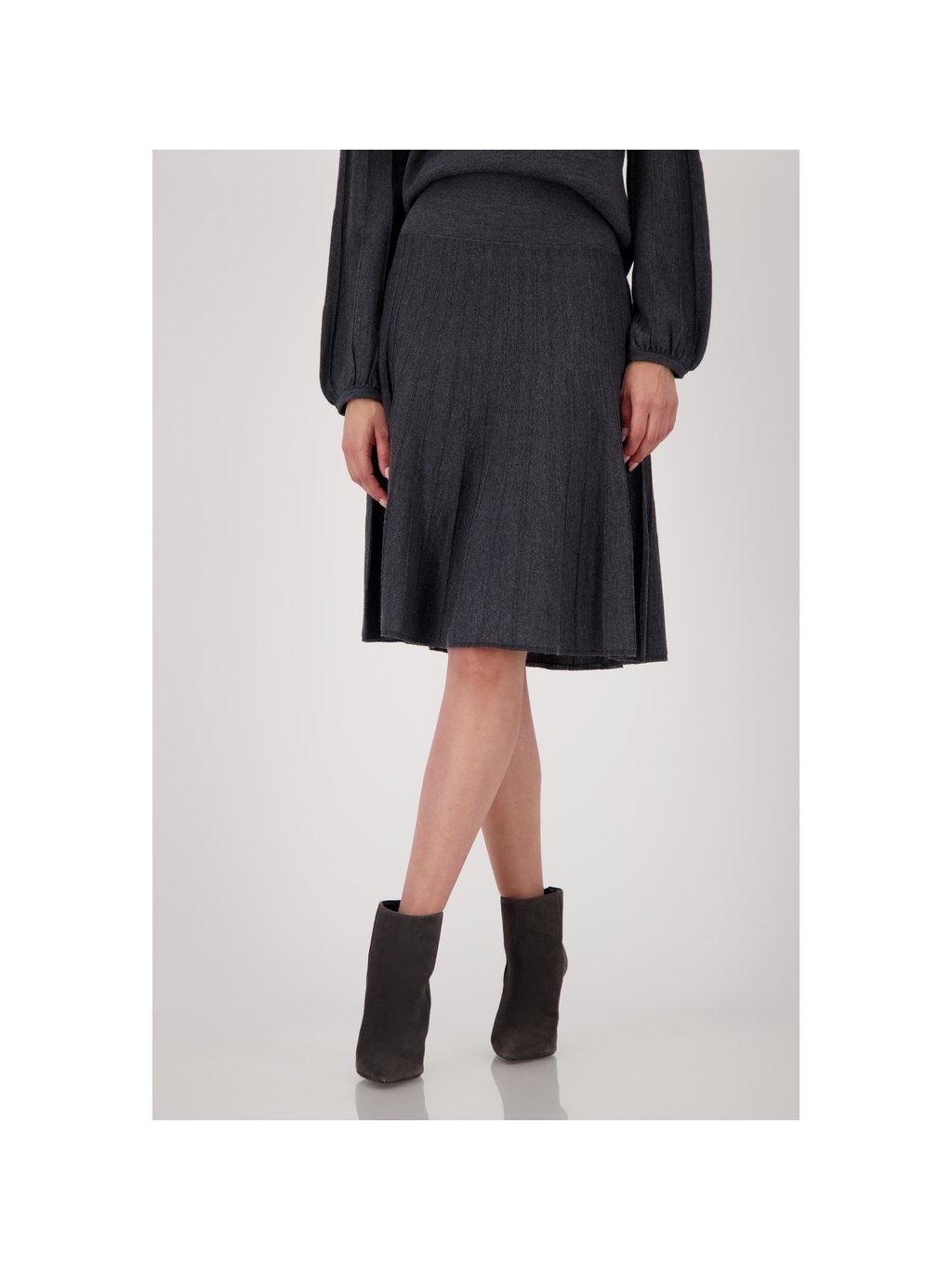 Tato pletená sukně vyrobená z vysoce kvalitní vlněné směsi se vyznačuje širokým pasem a elegantními sklady.