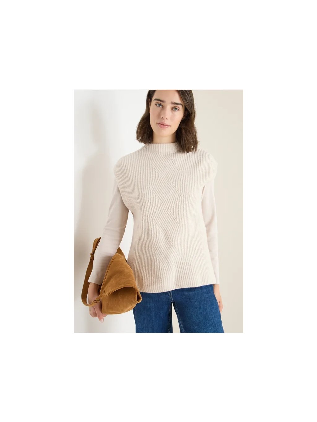 Tato útulná dámská vesta od značky CECIL se vyznačuje rolákem, detaily z copánkového úpletu a bočními rozparky. Bez rukávů je ideální pro stylové vrstvení s úpletovým nádechem. Pohodlný, nezbytný kousek s módním nádechem.