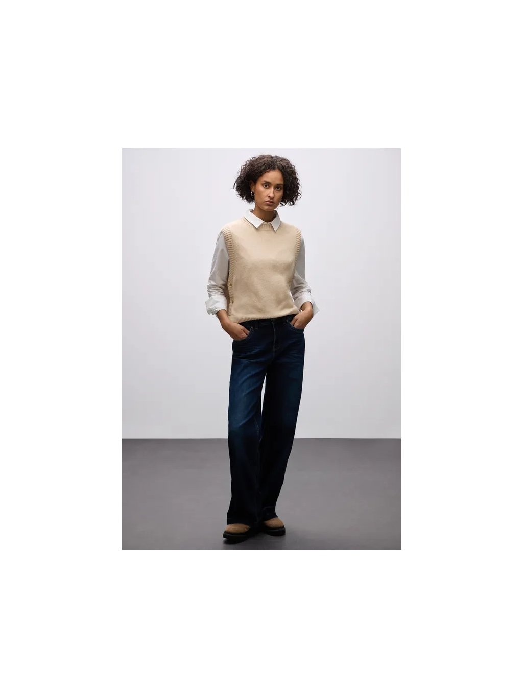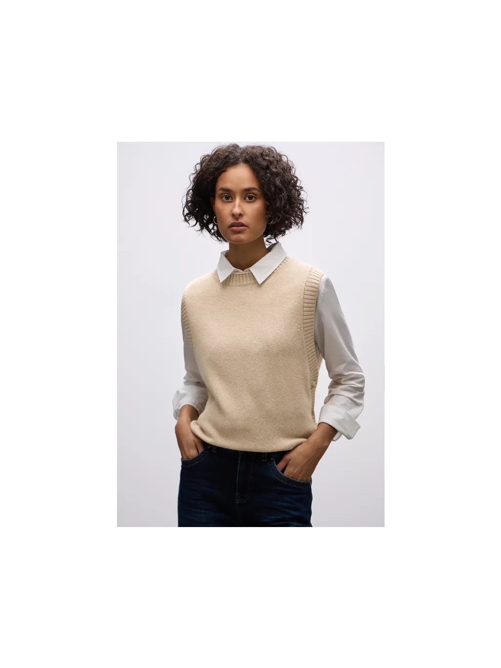 Tato dámská vesta od Street One je skutečnou nezbytností pro kreativní vrstvení. Boční knoflíky dodávají svetru stylový nádech a osobitý šmrnc. Měkká tkanina a klasický kulatý výstřih z něj činí všestranný kousek.