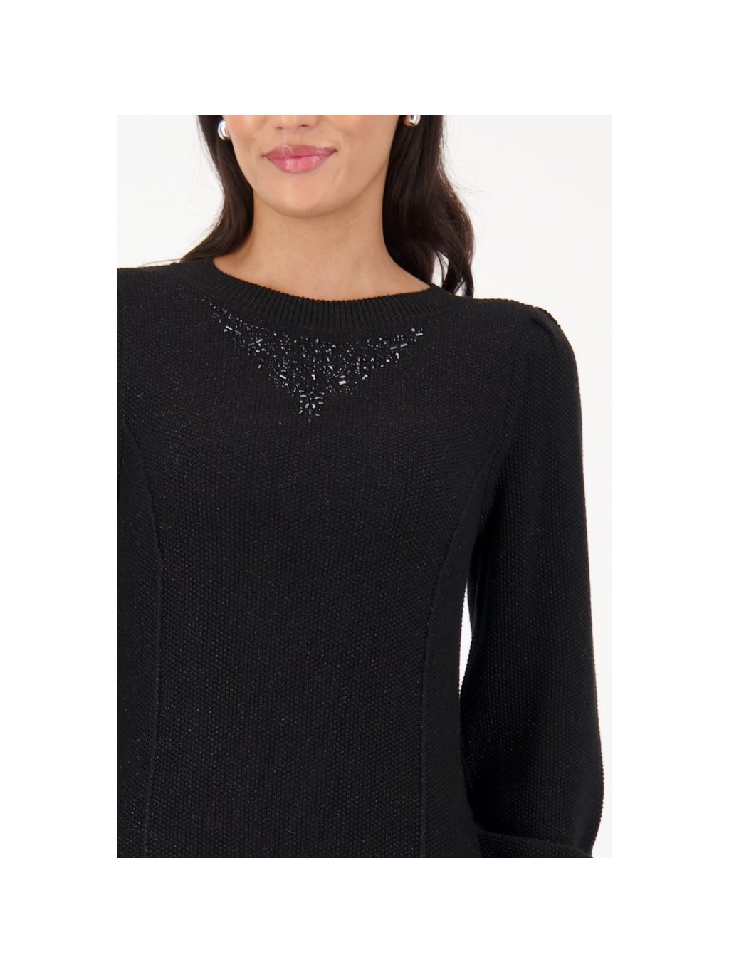 Elegantní pletené šaty z vysoce kvalitní bavlny, zdobené třpytivým lurexem a kamínky. Ideální pro každou příležitost.
