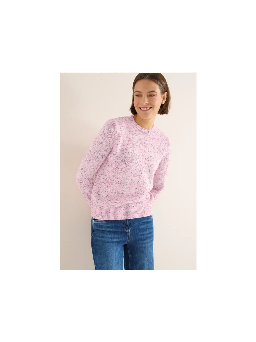 Tento dámský pletený svetr od CECIL zaujme zářivým vesmírně barveným vzorem, který zaručeně upoutá pozornost v jakémkoli outfitu. Kulatý výstřih a dlouhé rukávy s žebrovanými manžetami zajišťují pohodlné nošení, zatímco měkký úplet je příjemný na dotek. Všestranný svetr pro pohodové dny.
