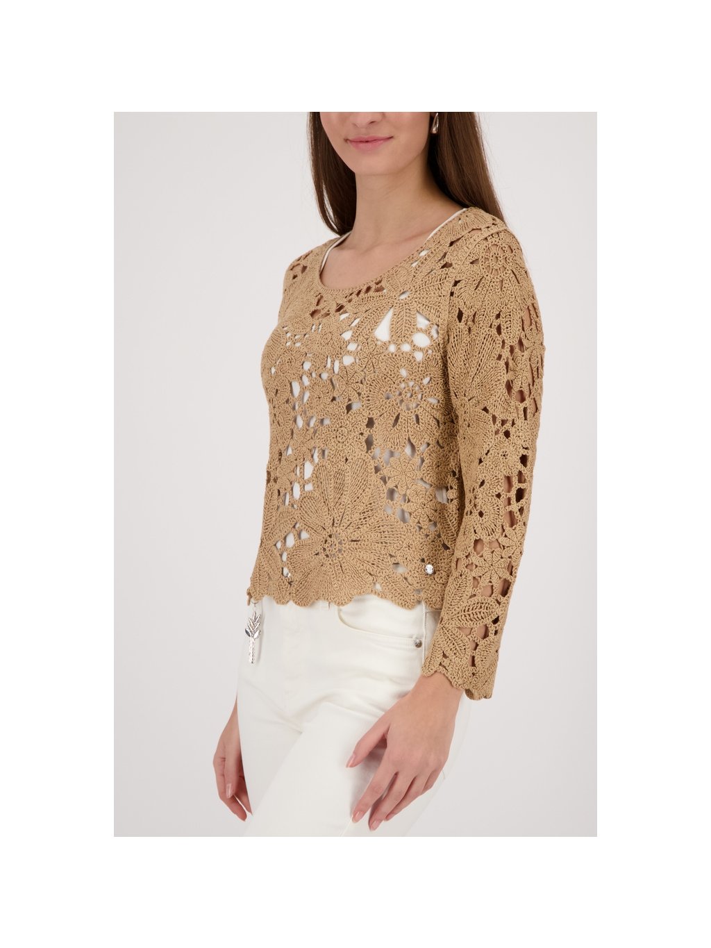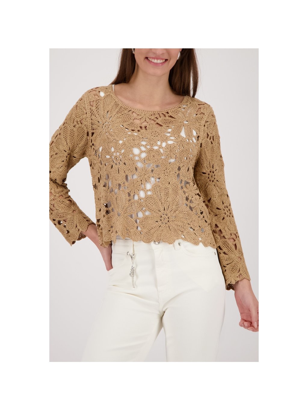 Pletený svetr Monari 410237 s háčkovaným vzorem