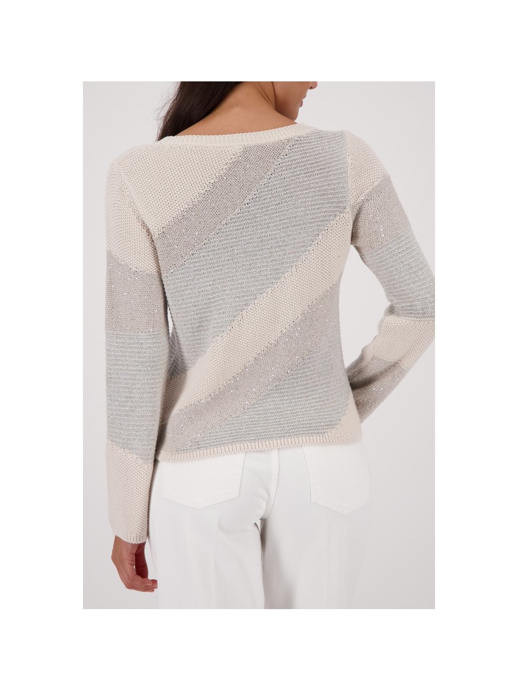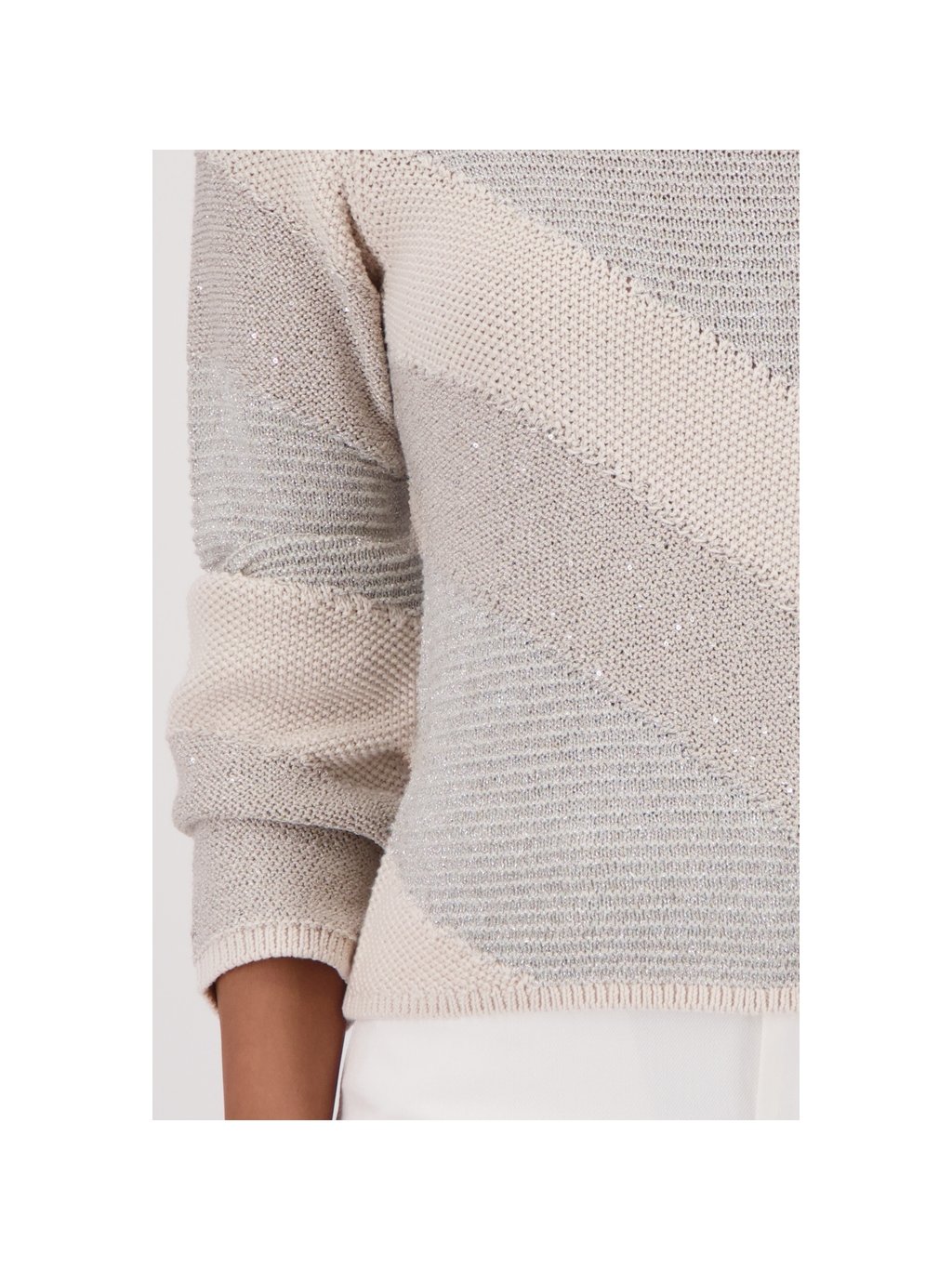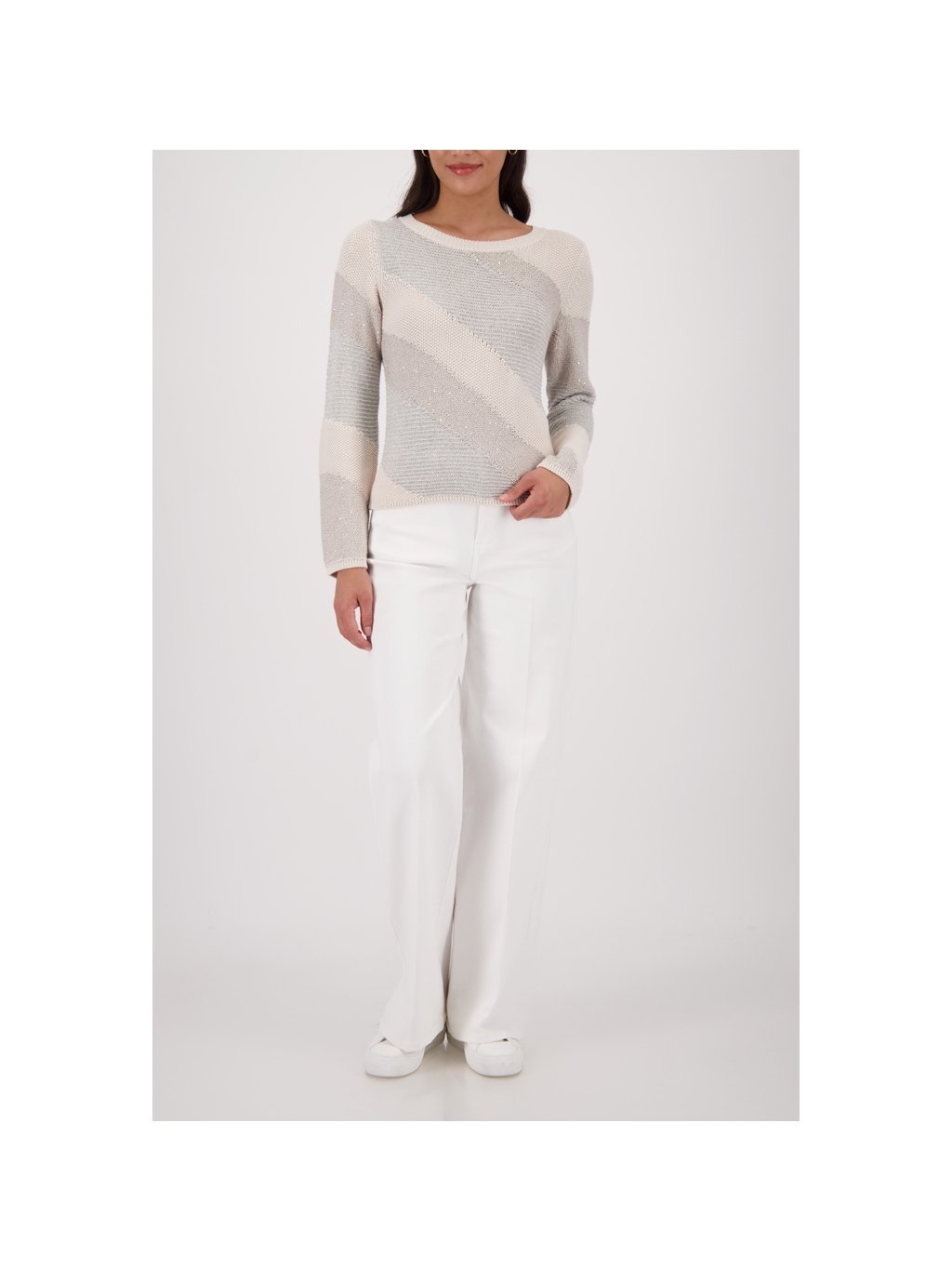 Elegantní pletený svetr z vysoce kvalitní bavlny, zdobený lesklým lurexem a třpytivými flitry.
