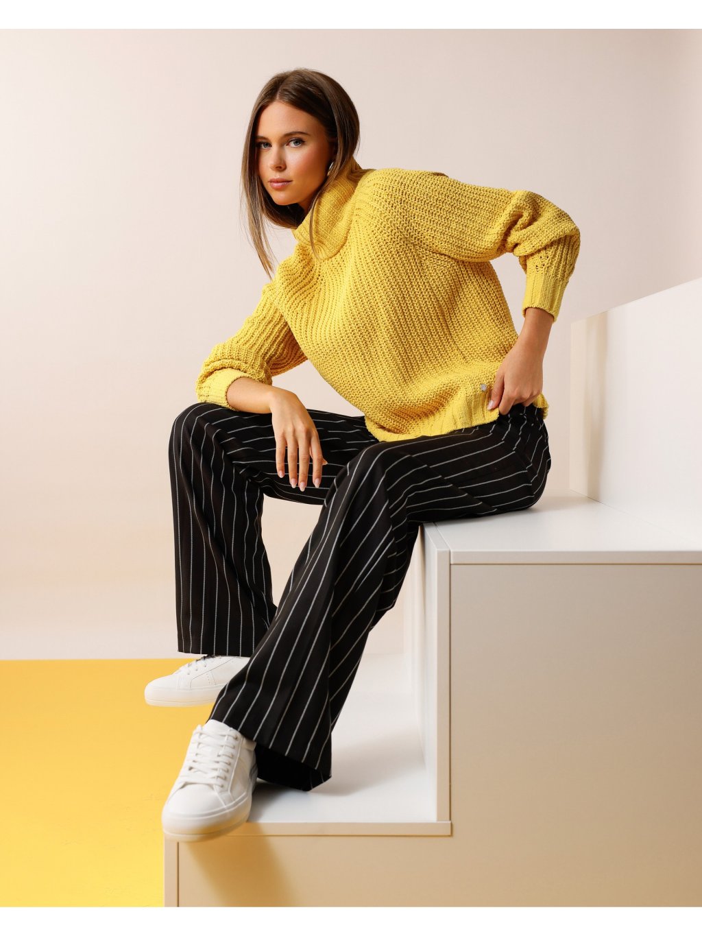 Tento pletený svetr z měkké žinylkové příze zaujme svým moderním perleťovým střapcovým vzorem a zaručí komfort při nošení.