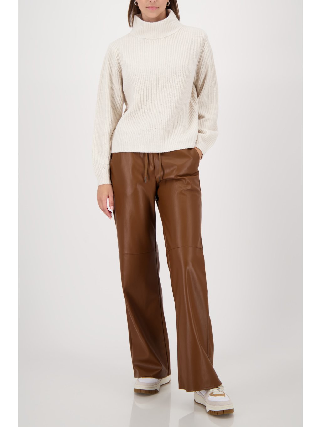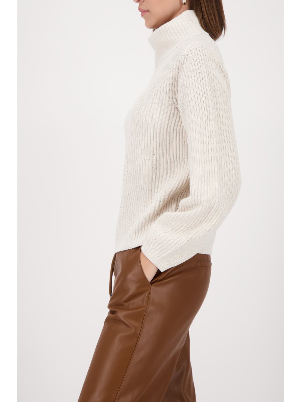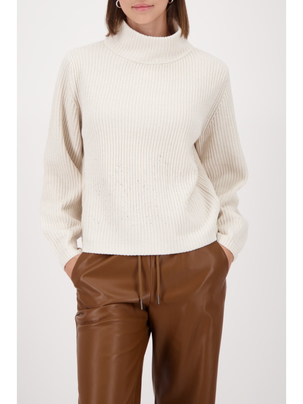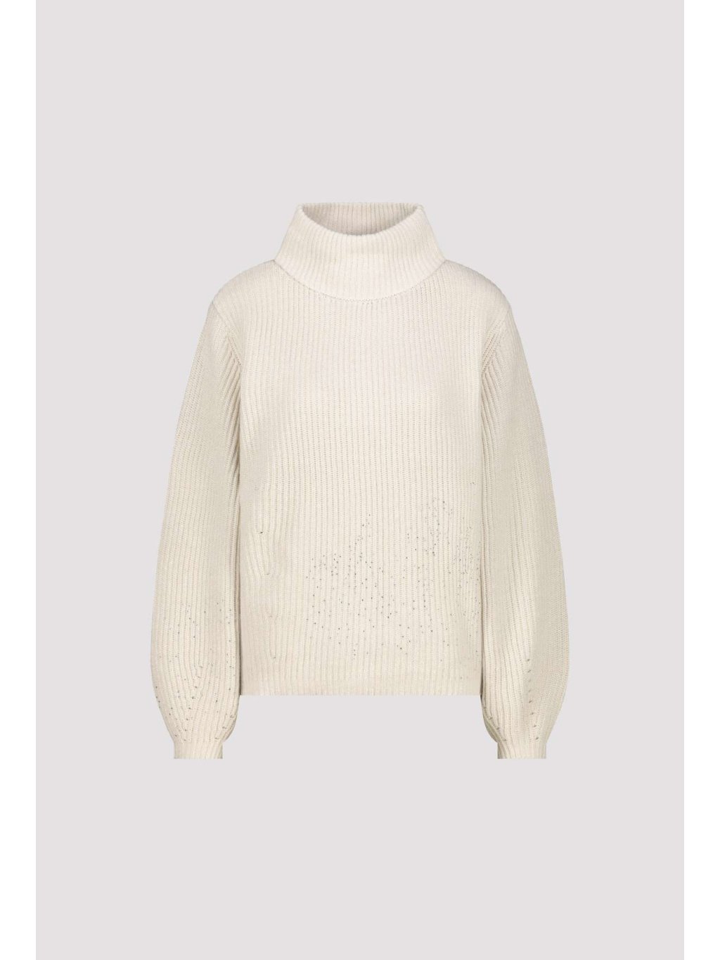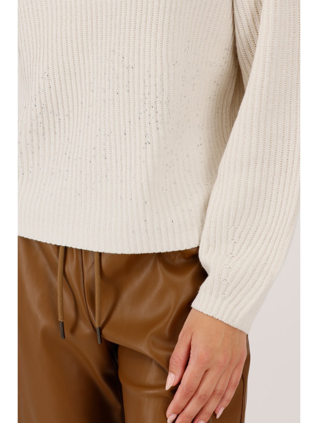 Elegantní pletený svetr vyrobený z vysoce kvalitní bavlněné směsi, zdobený lesklým lurexem a třpytivými kamínky pro moderní vzhled.
