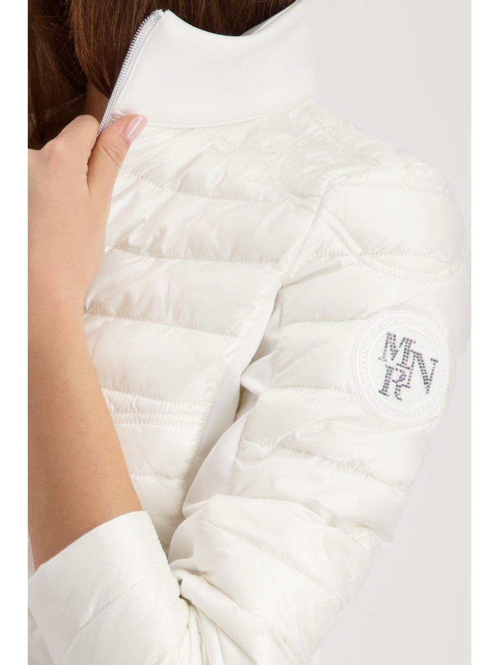 Tato lesklá prošívaná bunda s kvalitním neoprenem na stojáčku, dlouhých rukávech a bocích je lehká a bezstarostná.