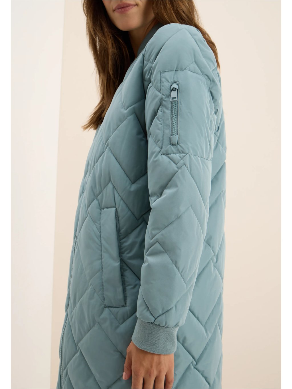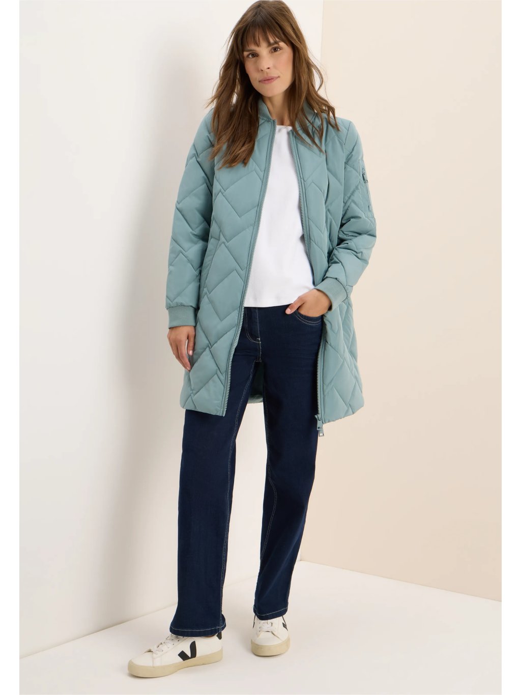 Tato dlouhá prošívaná bunda od značky CECIL pro ženy zaujme svou módní siluetou a pohodlnou lehkostí. Žebrovaný límec, manžety a malá kapsa na zip na rukávu dodávají halence sportovní nádech. Propracované prošívání a obousměrný zip zajišťují funkčnost a styl v jednom.
