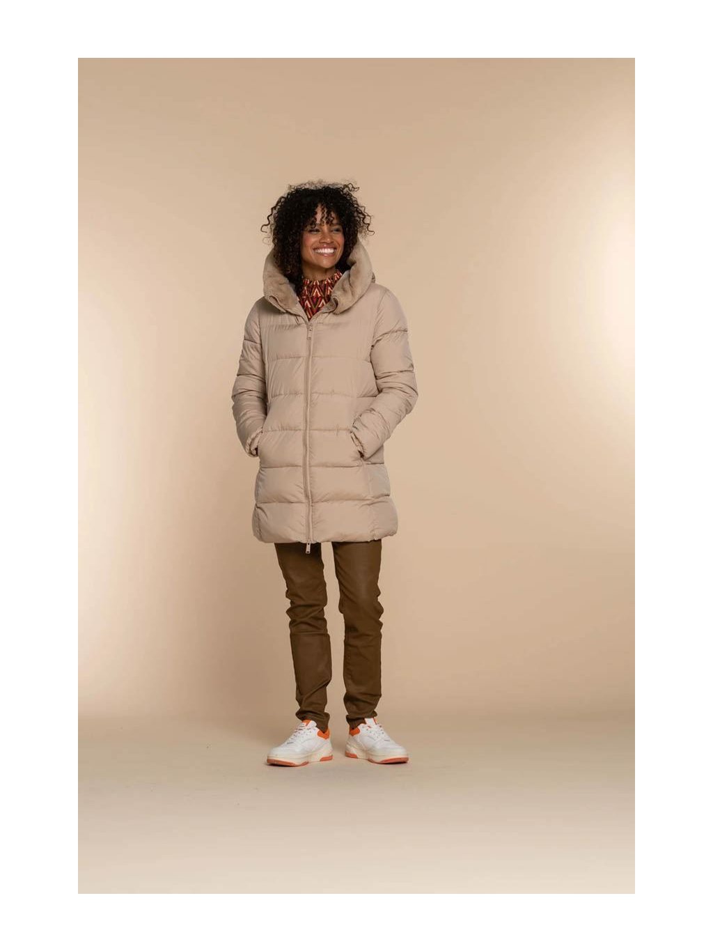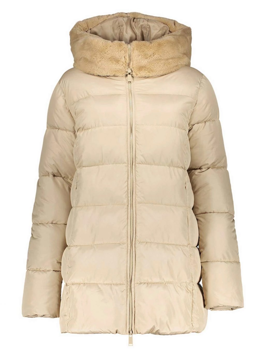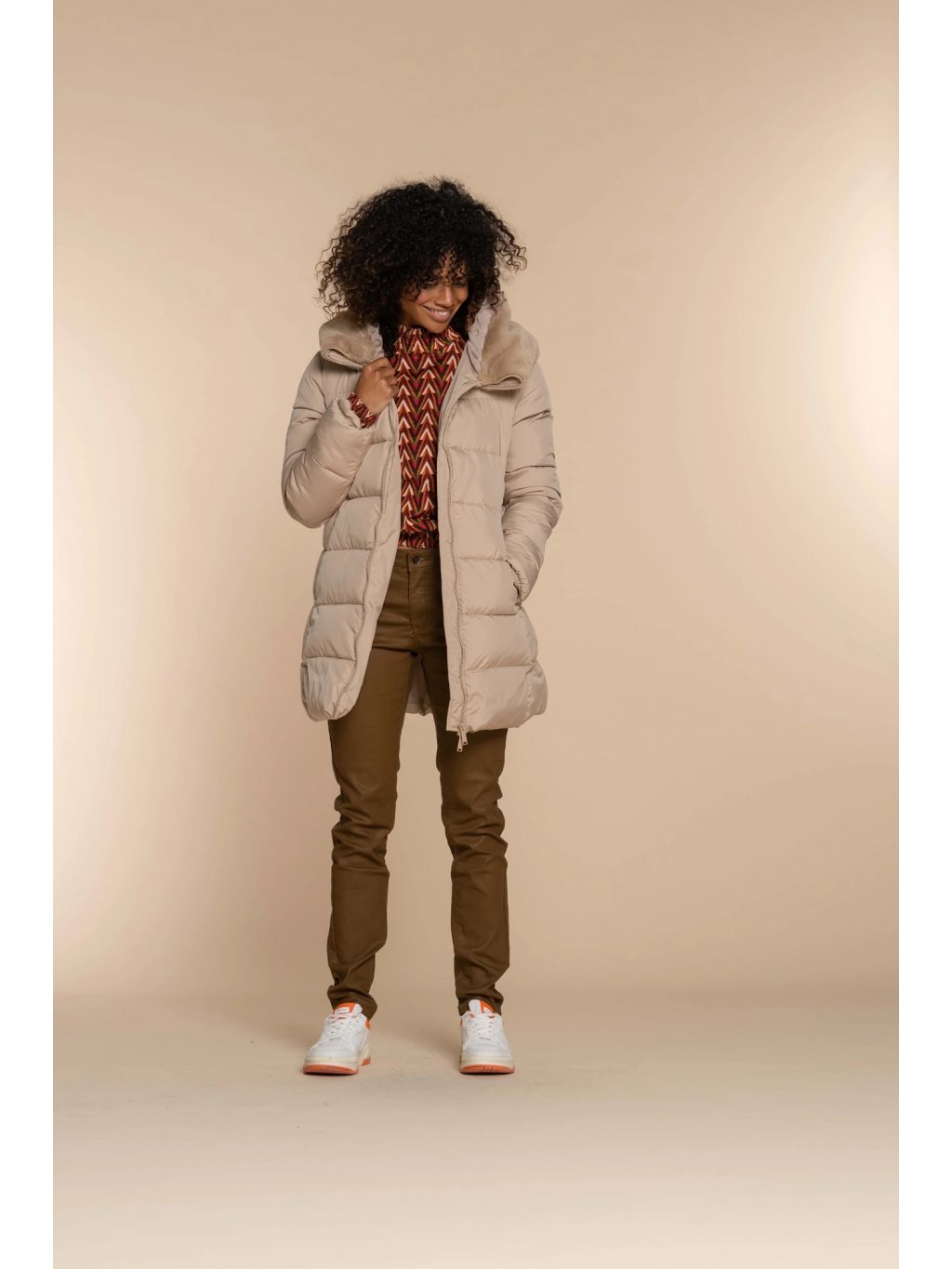 Prožijte zimní období stylově a v teple s tímto dámským krátkým kabátkem Geisha. Tento trendy krátký dámský zimní kabát, známý také jako puffer coat, nabízí ideální kombinaci módy a funkčnosti. Perfektní kousek pro chladnější měsíce. Vzpřímený límec přecházející do kapuce poskytuje ochranu před živly, plyšová kožešina na límci a kapuci dodává bundě útulný vzhled. Bunda je podšitá, takže zůstanete v teple a pohodlí bez ohledu na počasí. Tento dámský krátký zimní kabát Geisha vám vždy poskytne dokonalou rovnováhu mezi stylem a pohodlím, takže se můžete chladu postavit sebevědomě a módně.