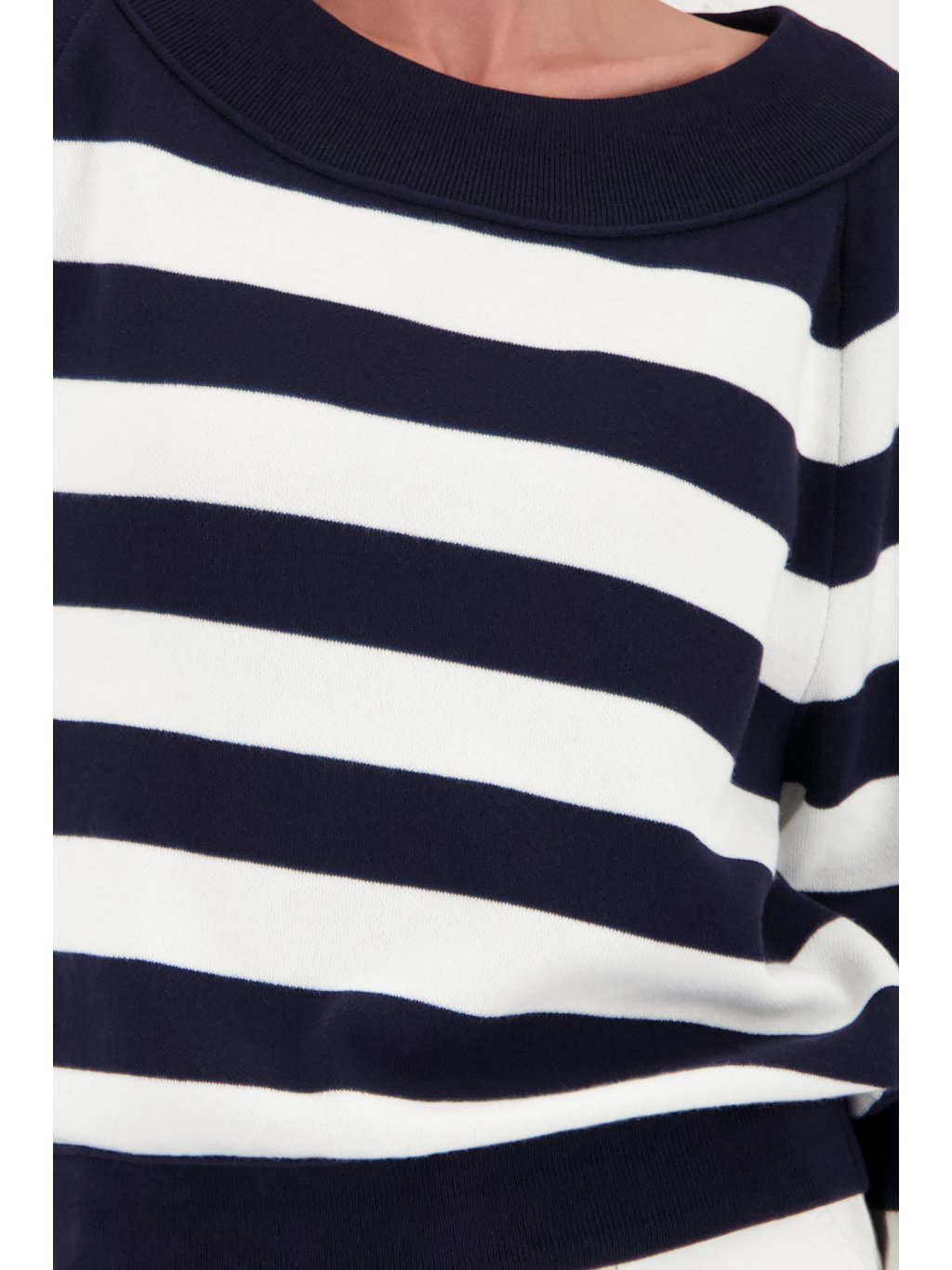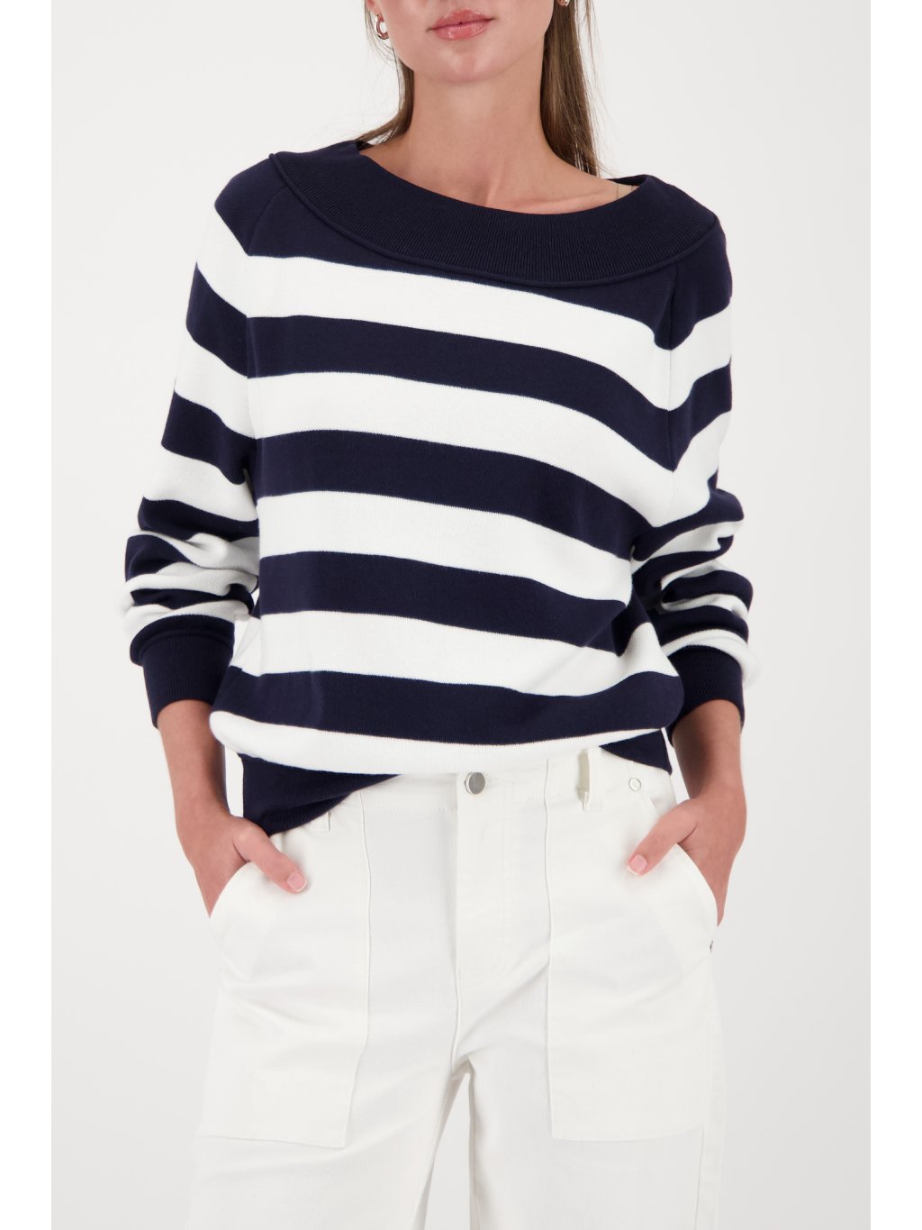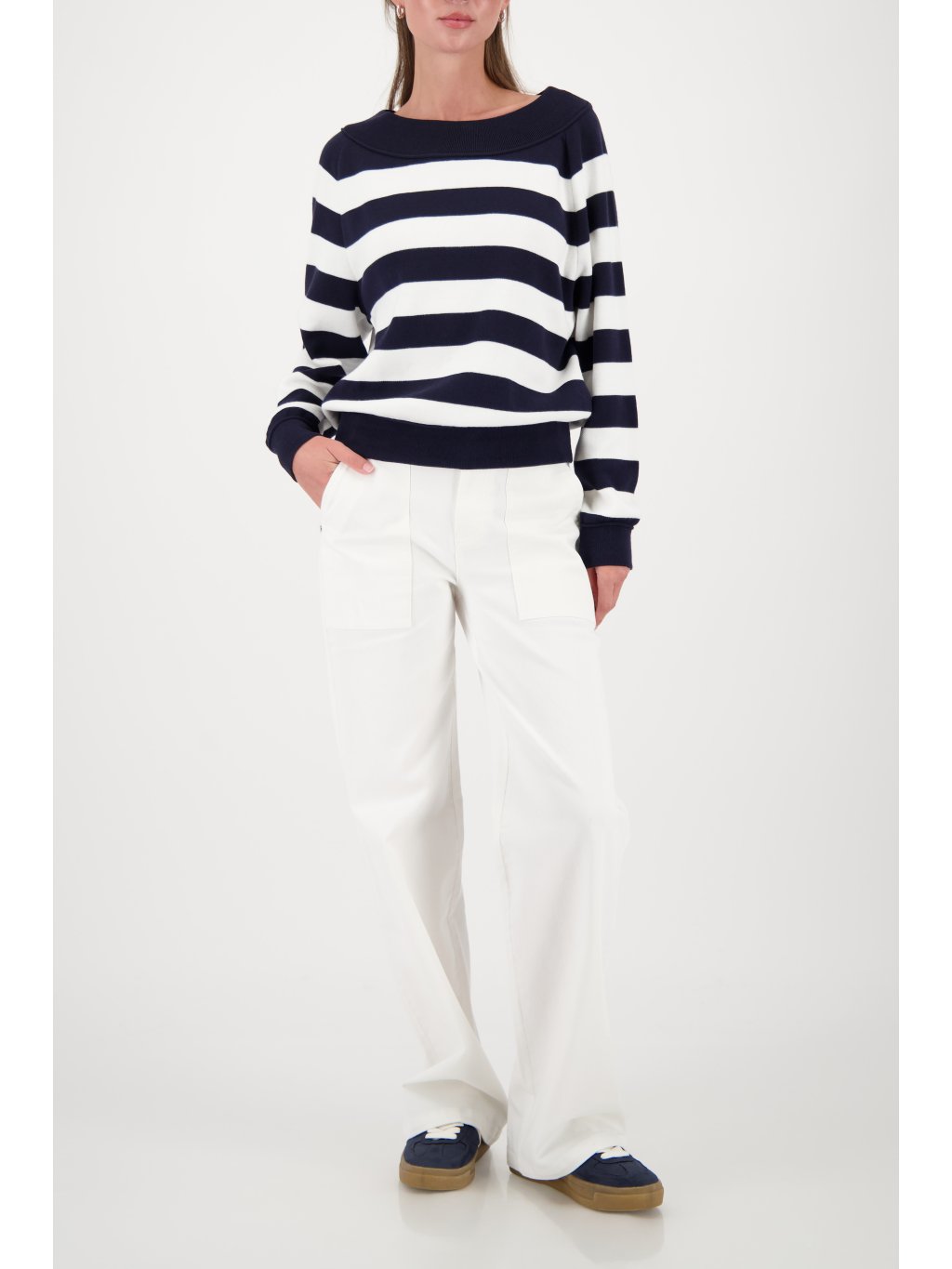 Elegantní pruhovaný pletený svetr ze 100% bavlny s lodičkovým výstřihem a stylovým rolovaným lemem.