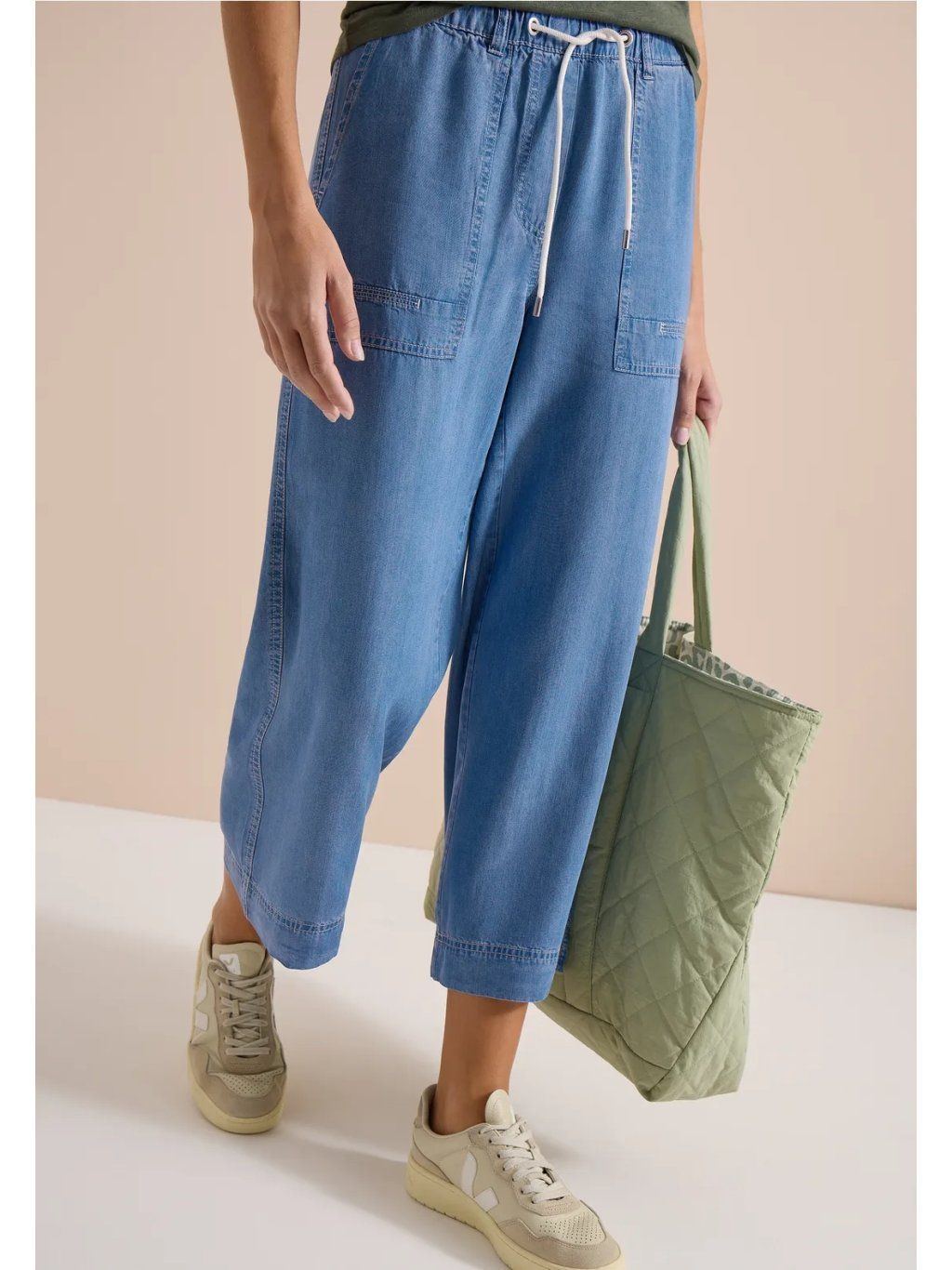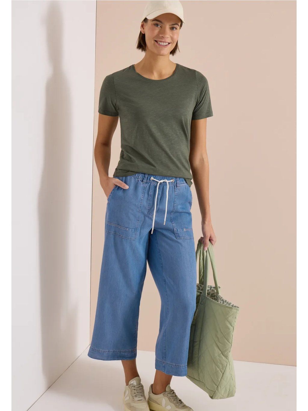 Kalhoty z lyocellu s vysokým pružným pasem mají volný střih, který doplňuje lehký, vzdušný materiál.
