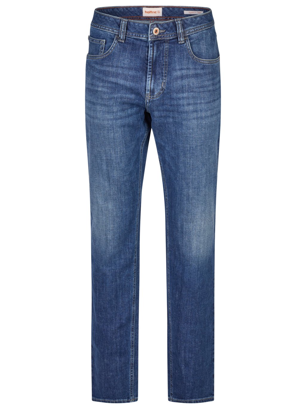S pětikapsovými džínami Parker v denimovém vzhledu od značky Hattric si vybíráte pánské kalhoty, které jsou zároveň ležérní i pohodlné. Povrchová úprava s efektem kamenného praní jim dodává autentický vzhled, zatímco streč a měkký povrch zajišťují pohodlné nošení. Pohodlný střih dělá z pětikapsových kalhot Hattric ideálního společníka pro pohodové dny.