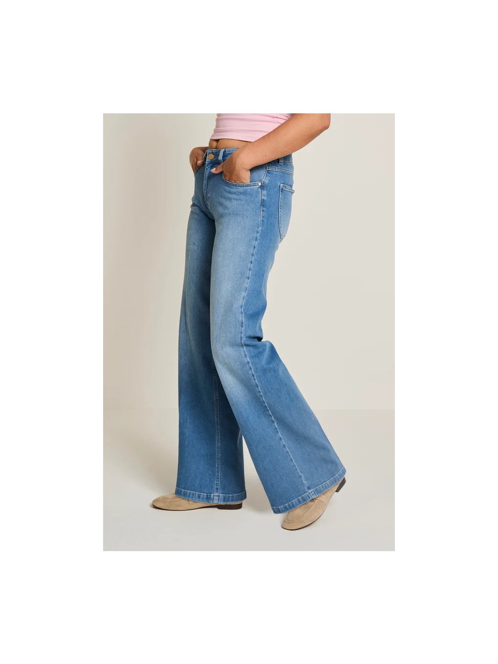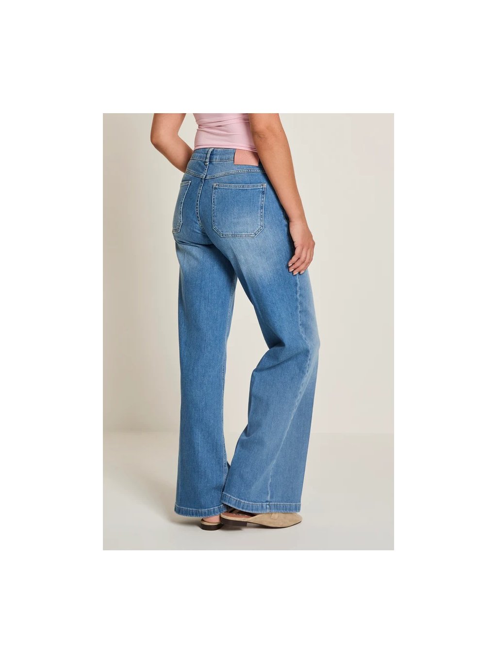 Rifle Mira mají vysoký pas. Kalhoty jsou volné kolem stehen a mají extra široké rozšířené nohavice.