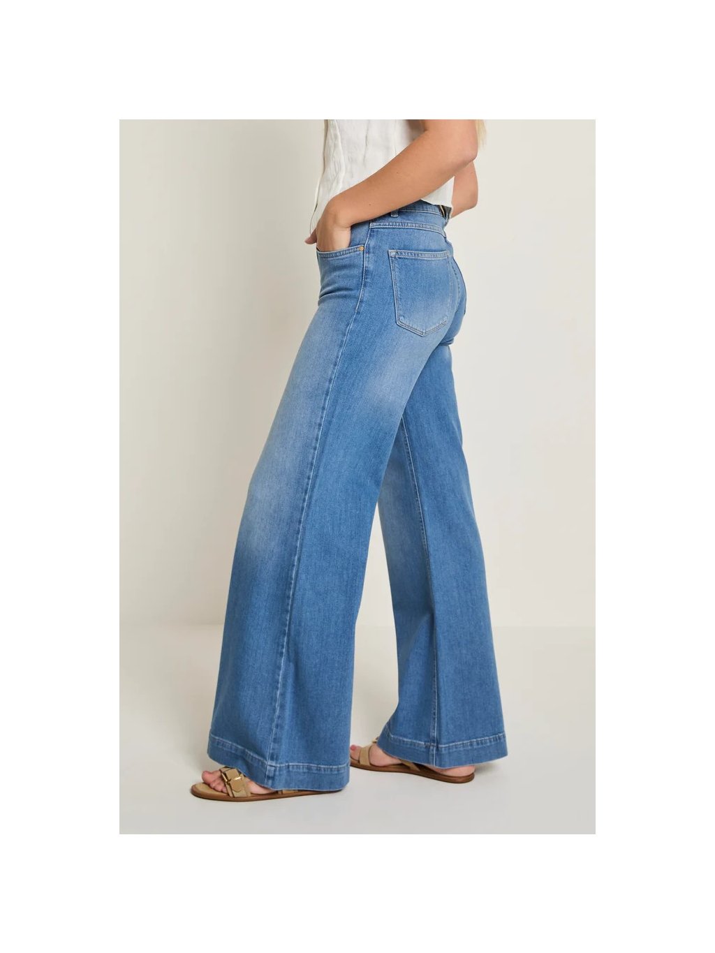 Rifle Para-Mi Scotty mají vysoký pas. Kalhoty jsou přiléhavé v bocích a mají extra široké rozšířené nohavice.