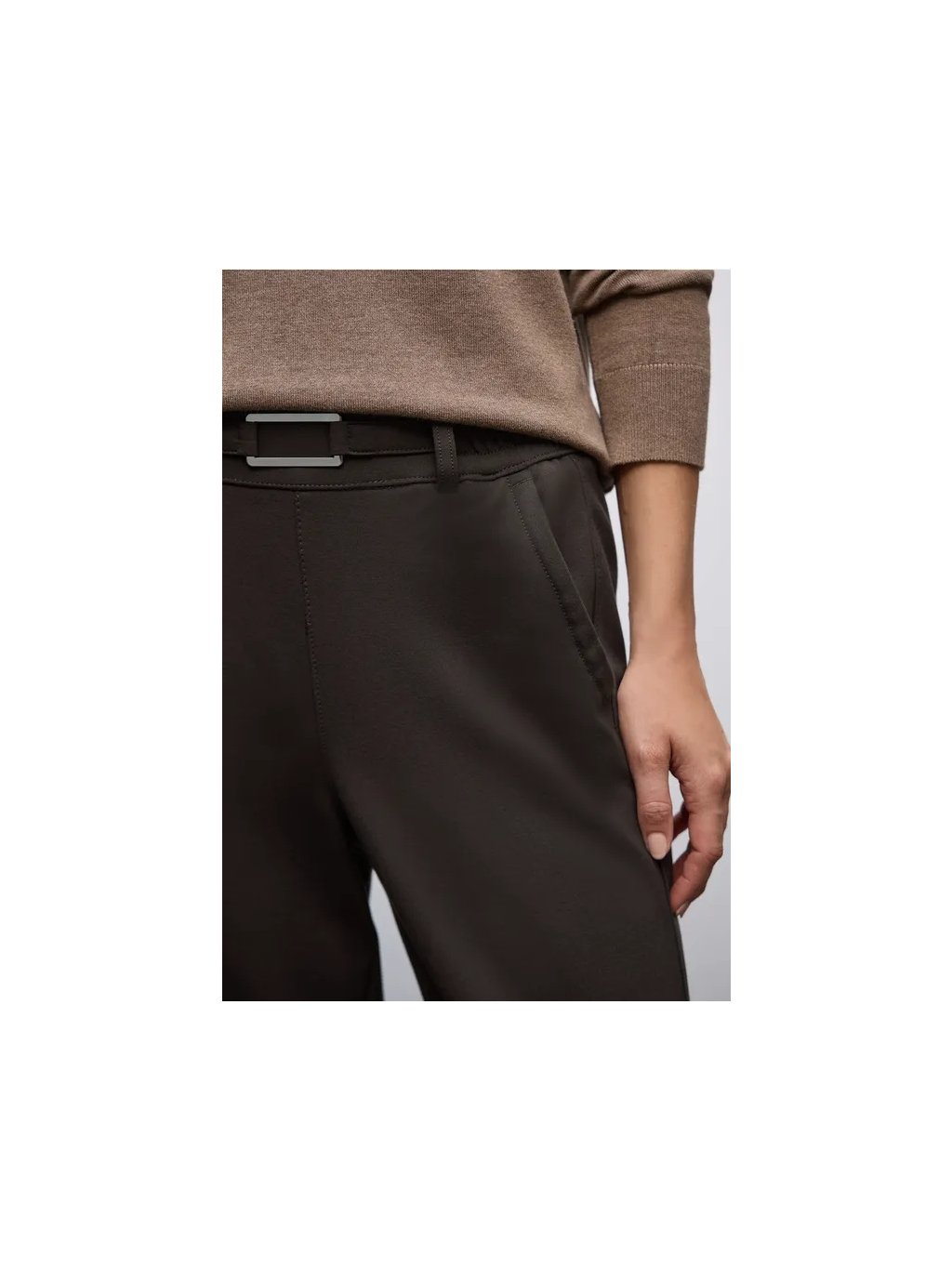 Tyto dámské kalhoty od Street One mají ležérní střih s rovnými nohavicemi a vysokým pasem. Elastický pas s přezkou poskytuje extra pohodlí a moderní vzhled. Směs viskózy a streče je příjemně měkká a dělá z těchto kalhot ideální všestranný kousek.