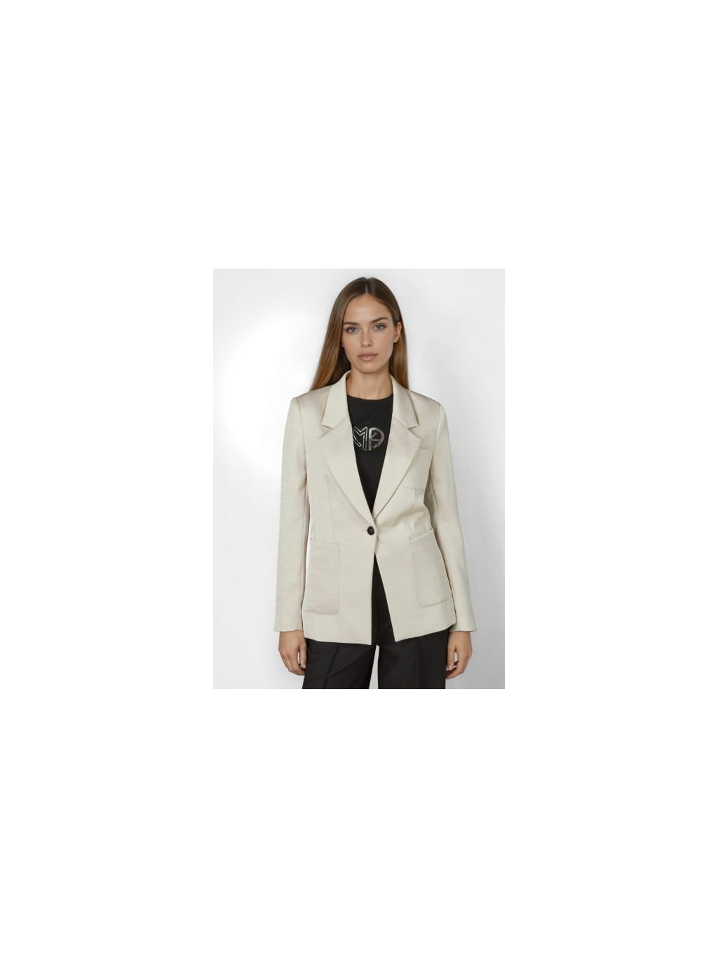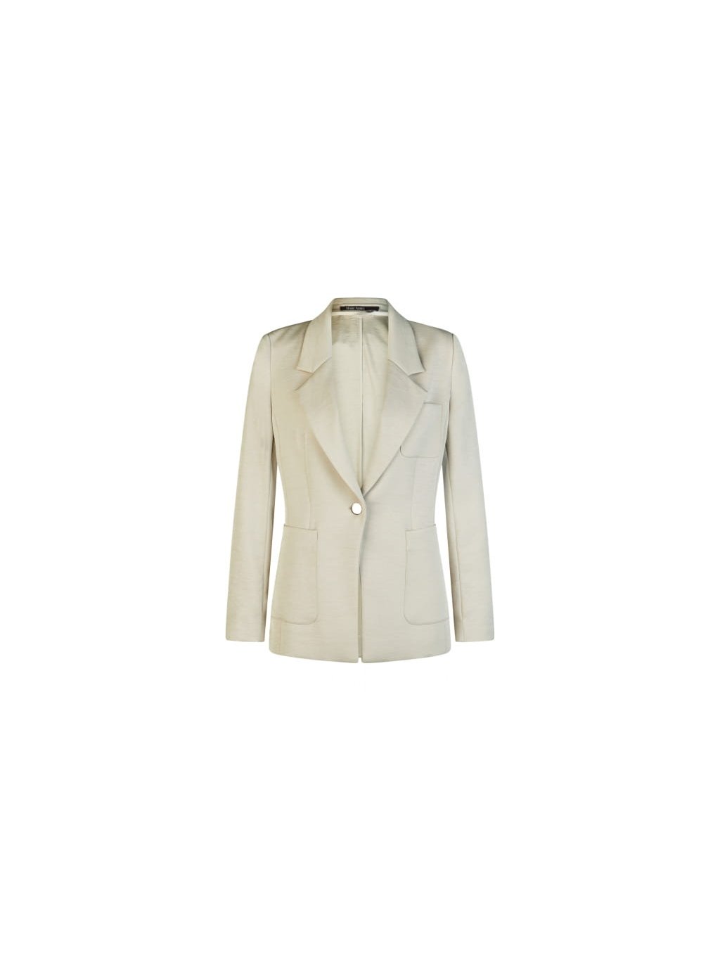 Sako se sportovním charakterem, jemně splývavá keprová tkanina, dodává moderní nádech pleteným páskům po stranách. Nakládané kapsy a splývavá klopa dotvářejí design. Decentní kovový přívěsek stylově doplňuje vzhled. Ideální pro módní styl.