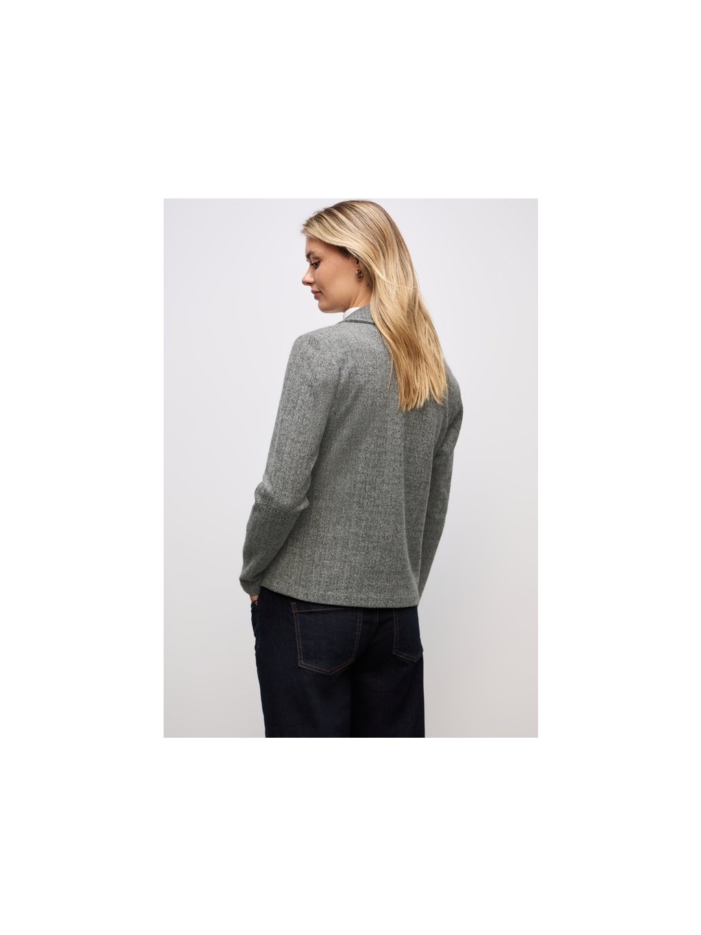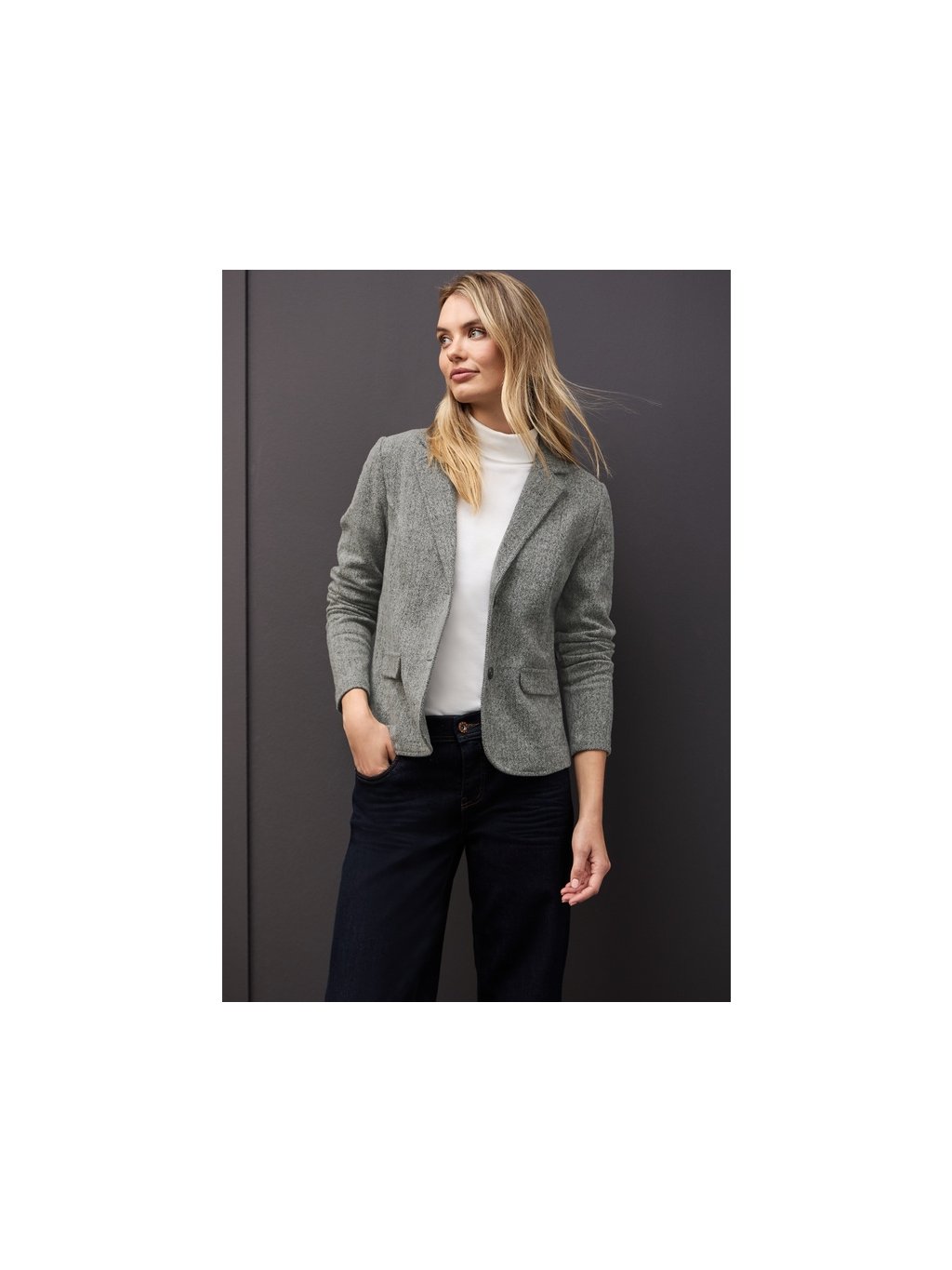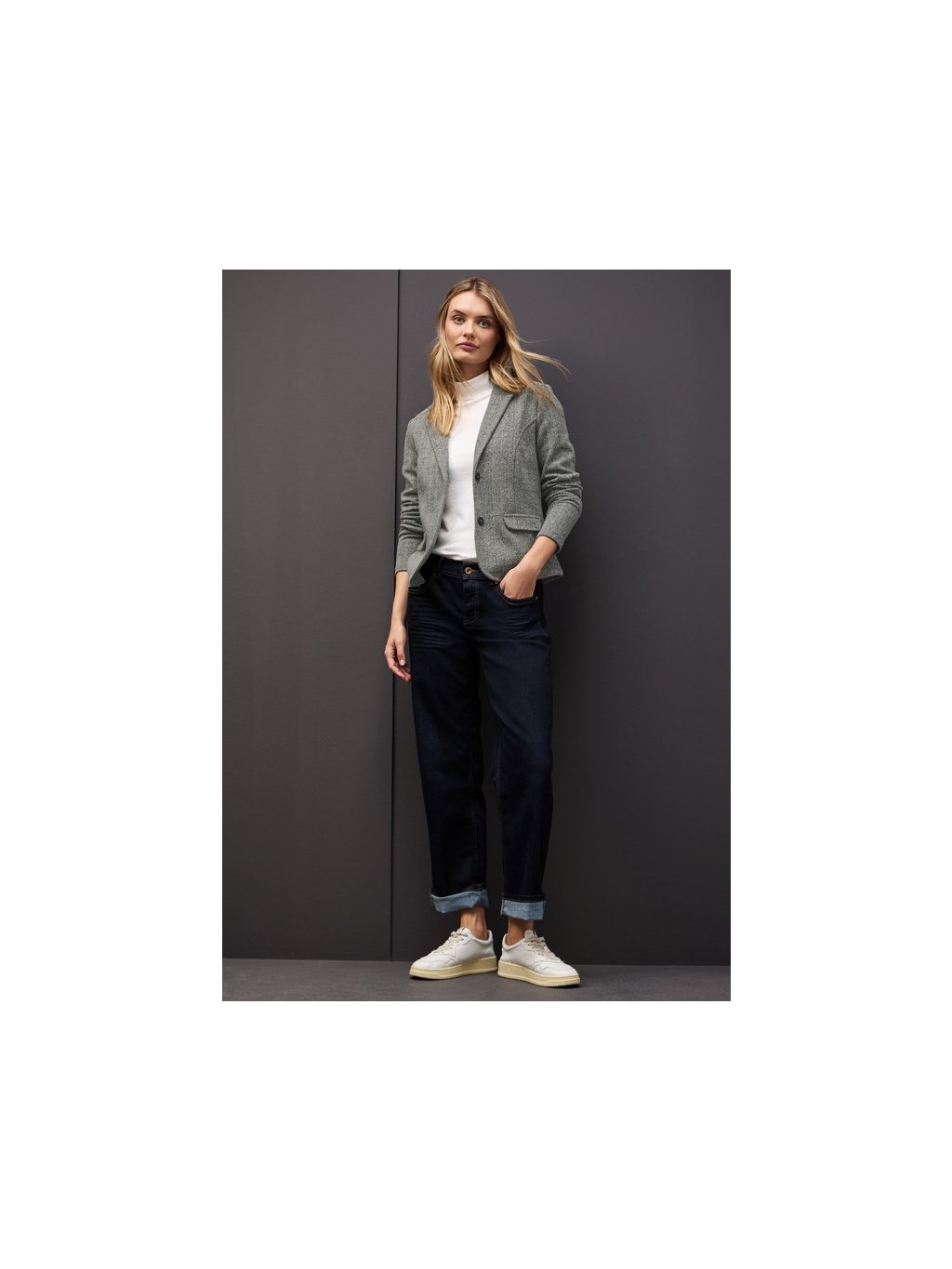 Toto dámské krátké sako od Street One je stylová klasika s moderním nádechem. Klopový límec a imitace kapes zdůrazňují čistý design, zatímco měkká směs látek zajišťuje pohodlné nošení. Ať už se hodí do kanceláře nebo na běžné nošení, toto sako s dlouhým rukávem je všestranným kouskem do vašeho šatníku.