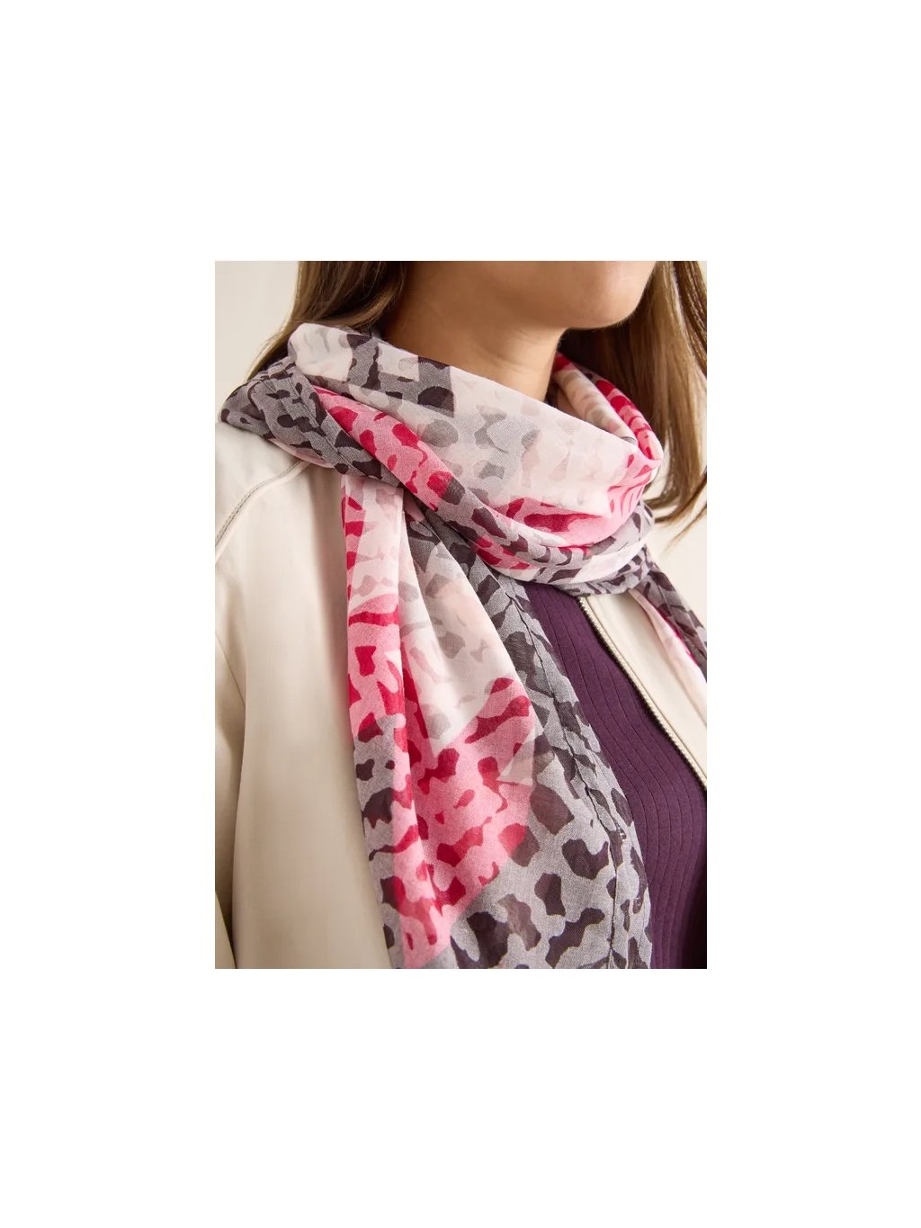 Tato lehká šála od značky CECIL pro ženy zaujme svým sofistikovaným vyhořelým vzhledem a grafickým vzorem. Příjemná směs materiálů zajišťuje výjimečné pohodlí. Stylový doplněk pro ženský a moderní vzhled.