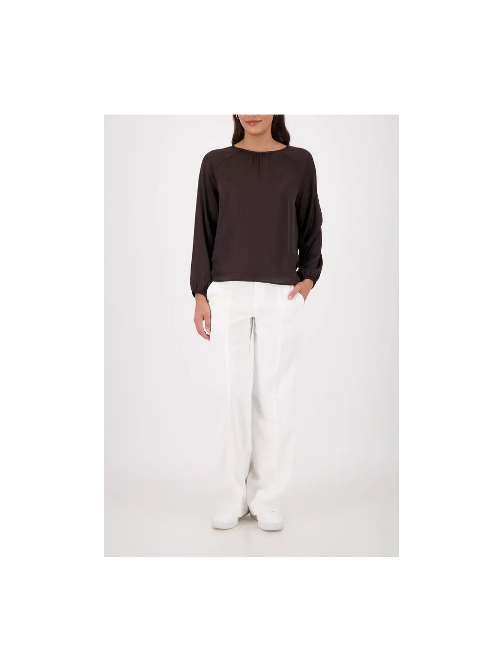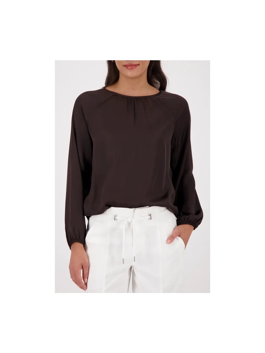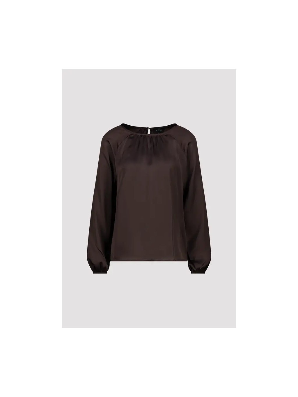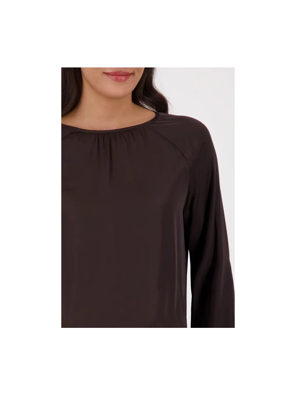 Elegantní halenka v saténovém vzhledu s řasením, kulatým výstřihem a elastickými manžetami – moderní nezbytnost!
