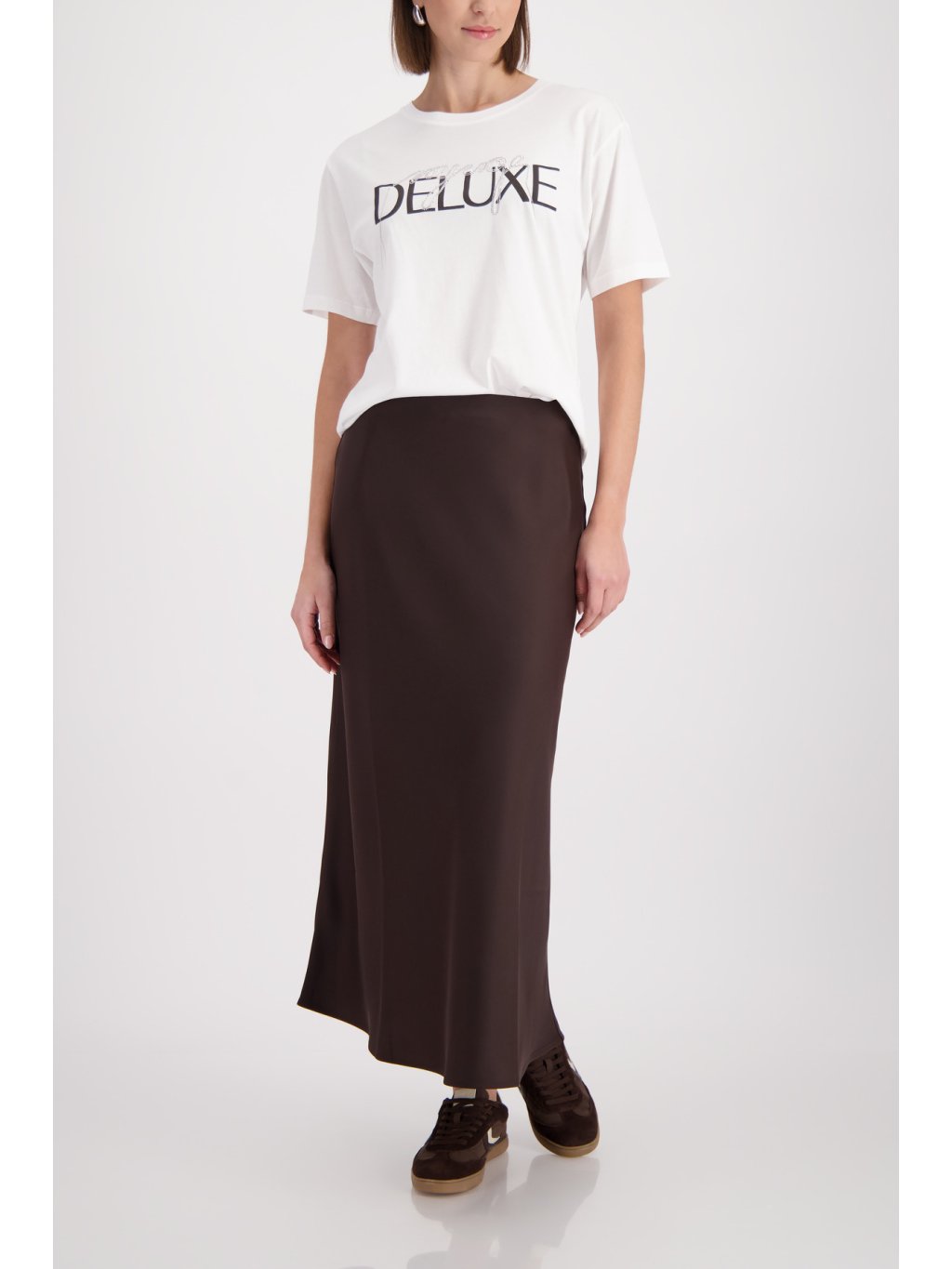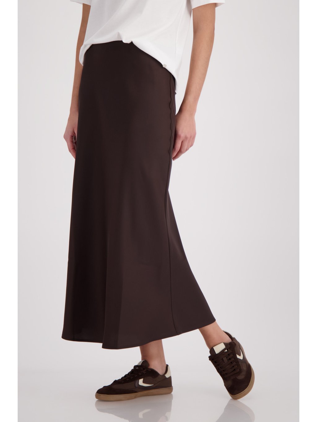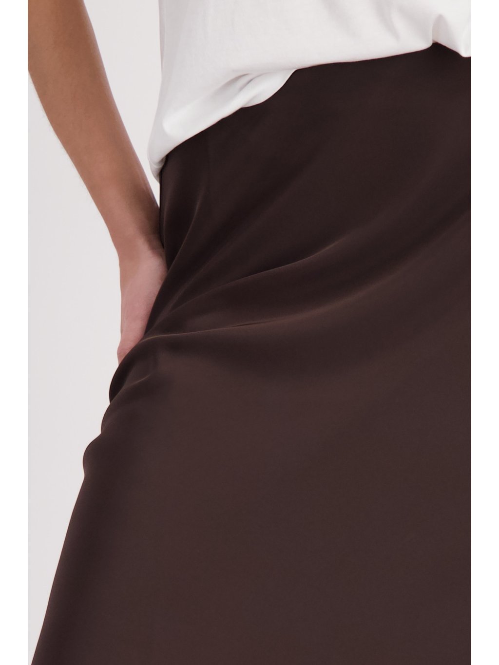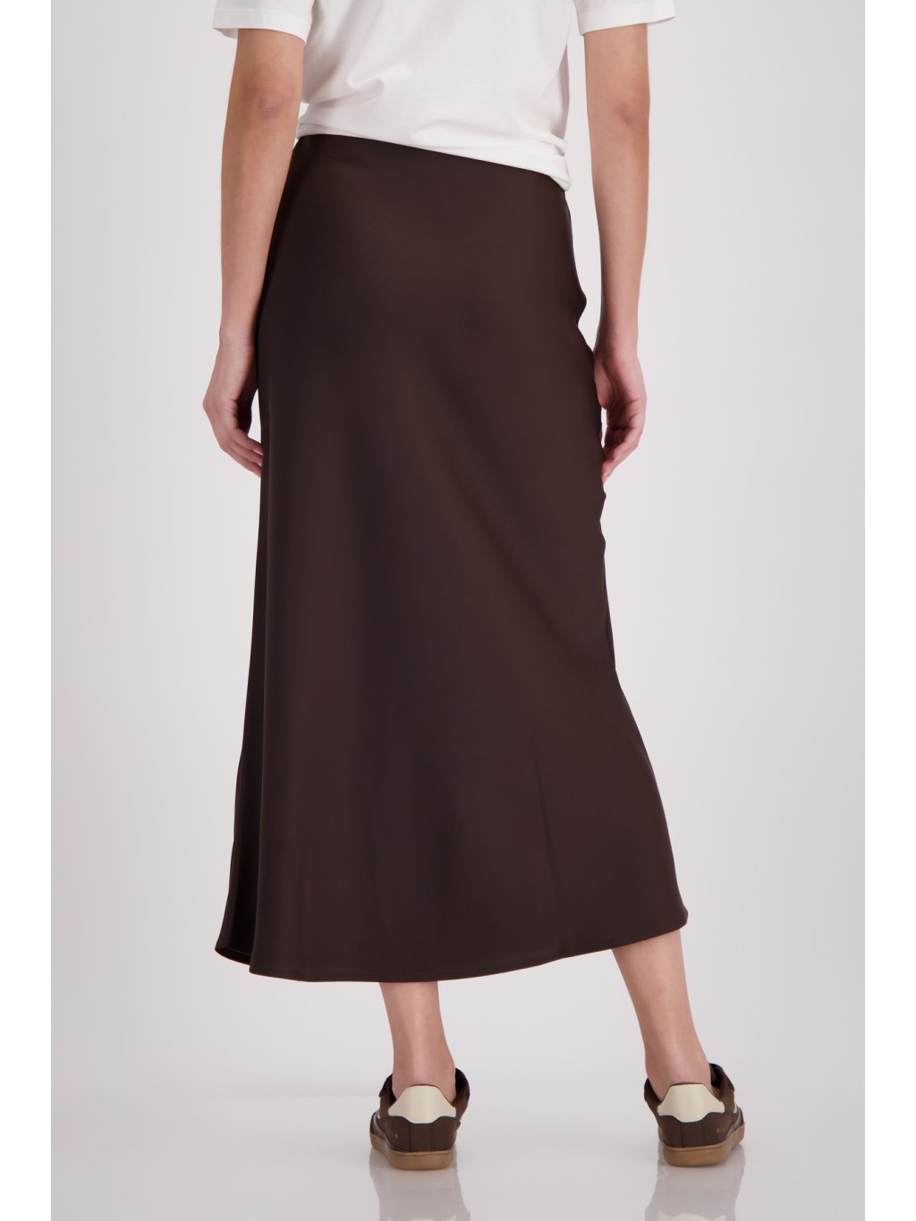 Elegantní saténová sukně midi délky z pružného materiálu se splývavým lemem a pohodlným pasem – pro stylový vzhled.