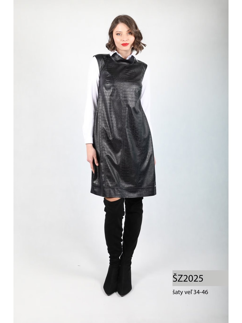 Šaty Andrea Martiny z aktuální kolekce jsou výrazným a vkusným kouskem do vašeho šatníku. Šaty bez rukávů s designem hadí kůže v černé barvě snadno skombinujete s bílou košilí pro dokonalý outfit. Šaty mají na zádech zip, jsou prostřižené v pase, mají kapsy a lehce rozšířenou sukni.