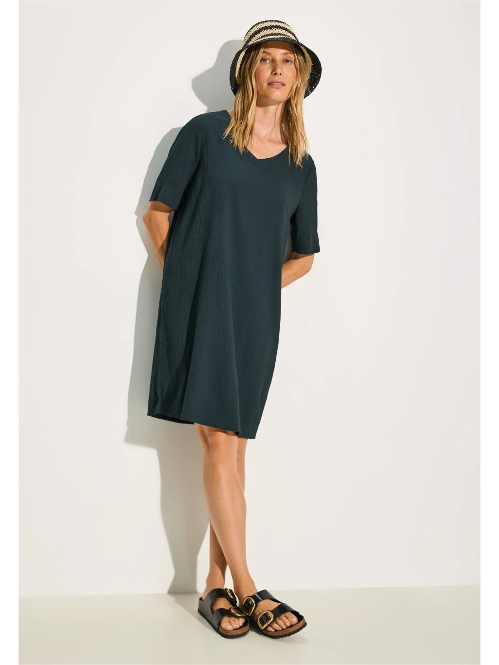 Svěží a lehké! Dámské strukturované šaty od CECIL jsou ideální pro teplé dny. S krátkým rukávem, výstřihem do V a délkou nad kolena tyto šaty z měkké viskózové směsi nabízejí pohodlí a jsou šik. Užijte si léto....