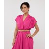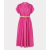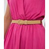 Elegantní šaty áčkového střihu s plisovanými detaily a bočními kapsami. Tyto šaty spojují eleganci a pohodlí v jednom designu. Součástí šatů je pásek, který zvýrazňuje pas. Šaty se skládají ze 70% viskózy a 30% nylonu. Modelka měří 1,73 m a má na sobě velikost S.