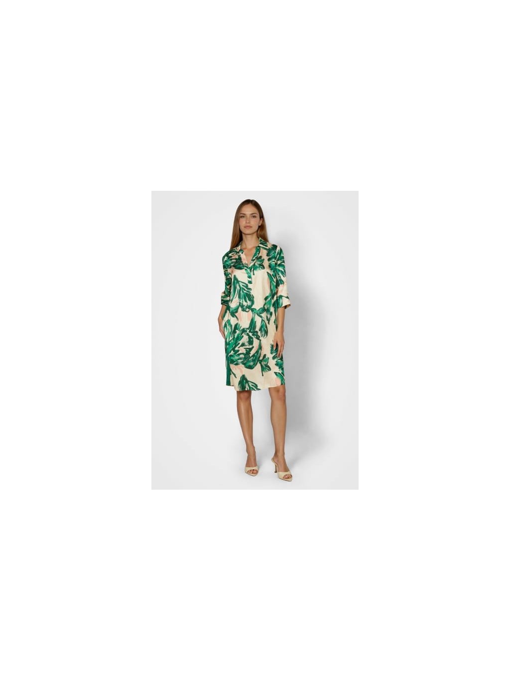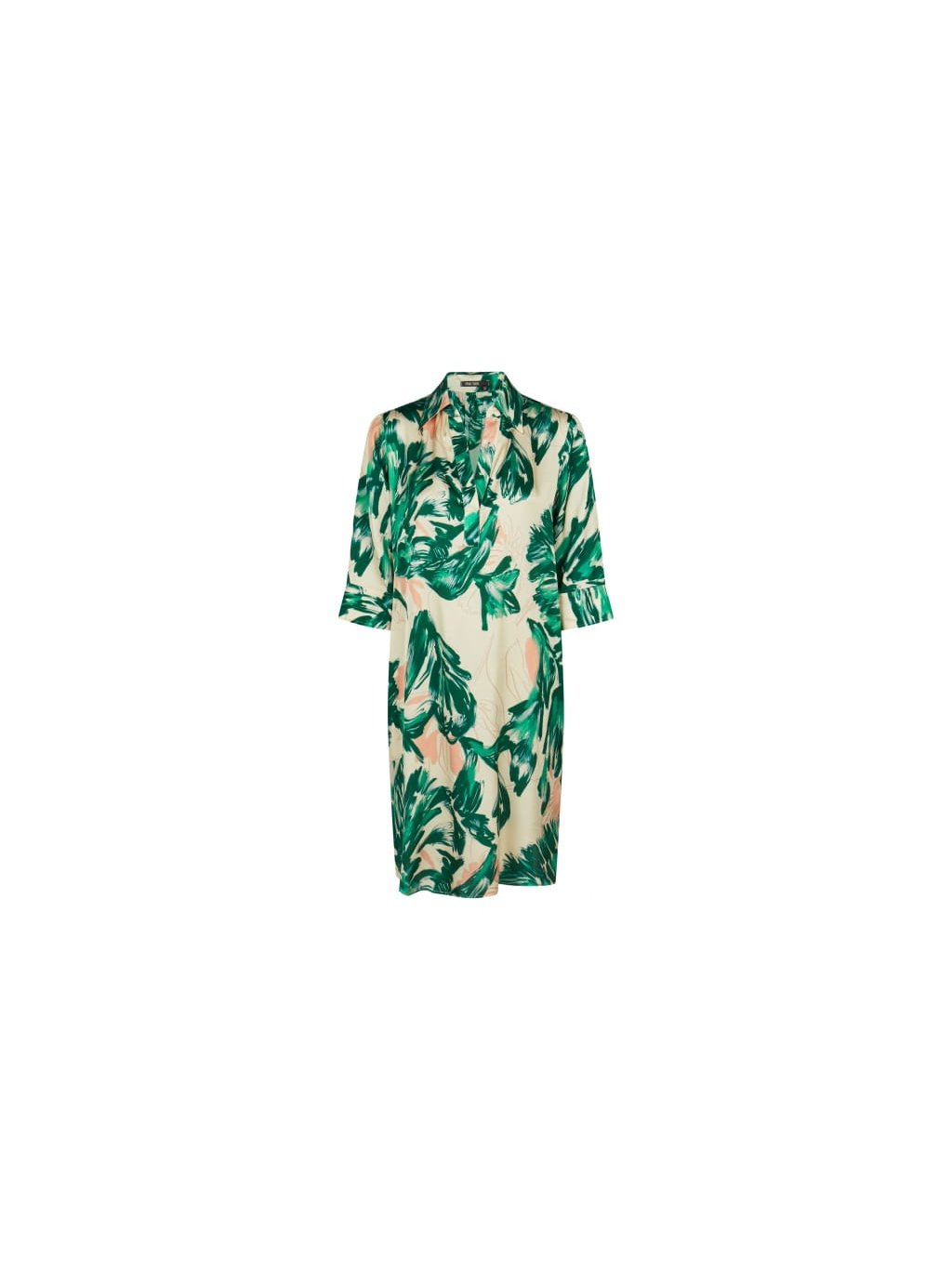 Tyto šaty z lehkého viskózového saténu kombinují zářivý potisk se sportovními detaily. Polo límec dodává vzhledu jasné kontury a rozparky na manžetách dotvářejí střih. Splývavá látka zajišťuje pohodlné nošení. Ideální pro ležérní a zároveň moderní vzhled.