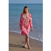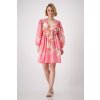 Tyto šaty ze směsi bavlny a modalu se vyznačují květinovým vzorem, výstřihem do V a čtvrtinovými rukávy pro ležérní a ženský vzhled.