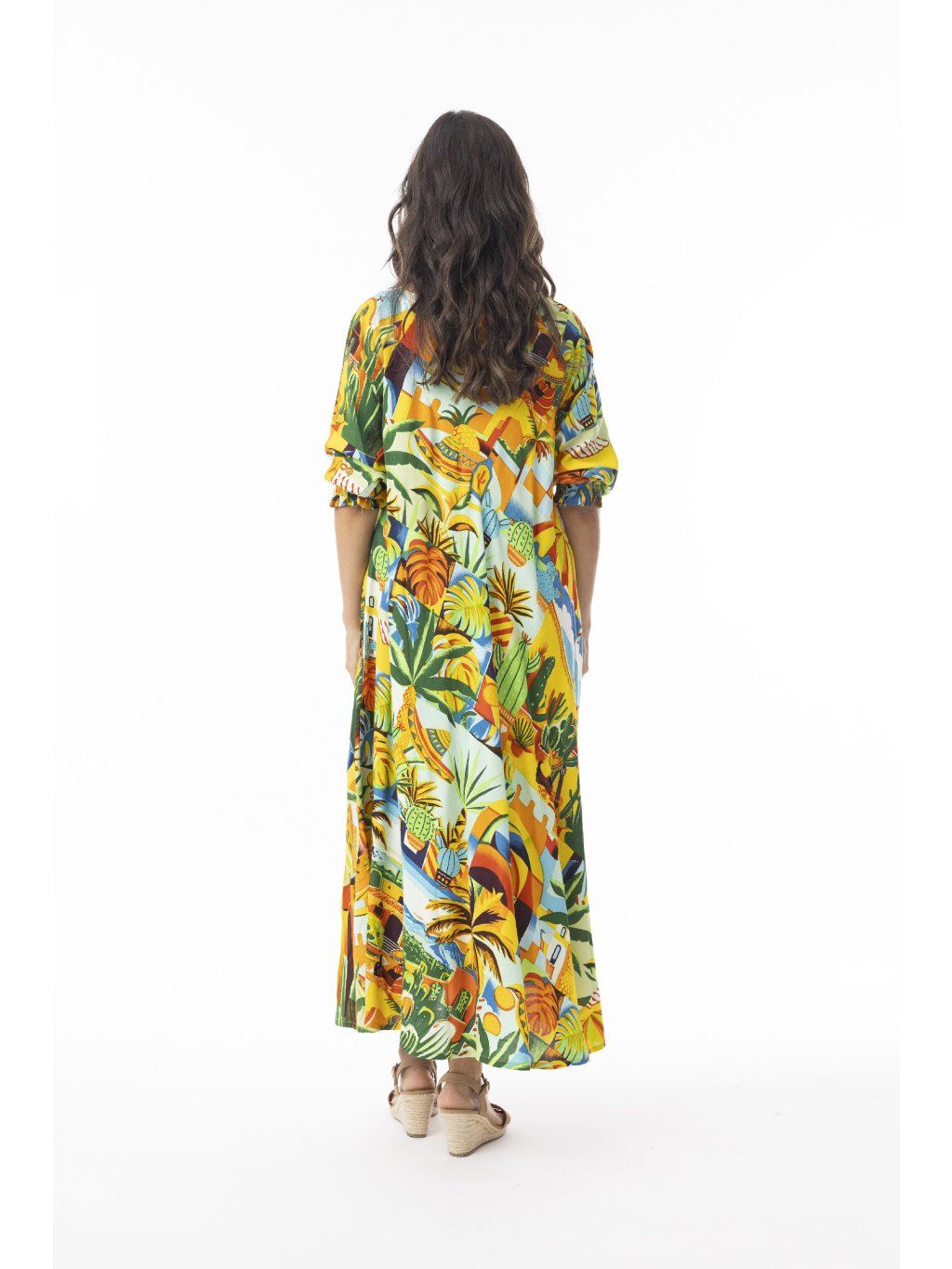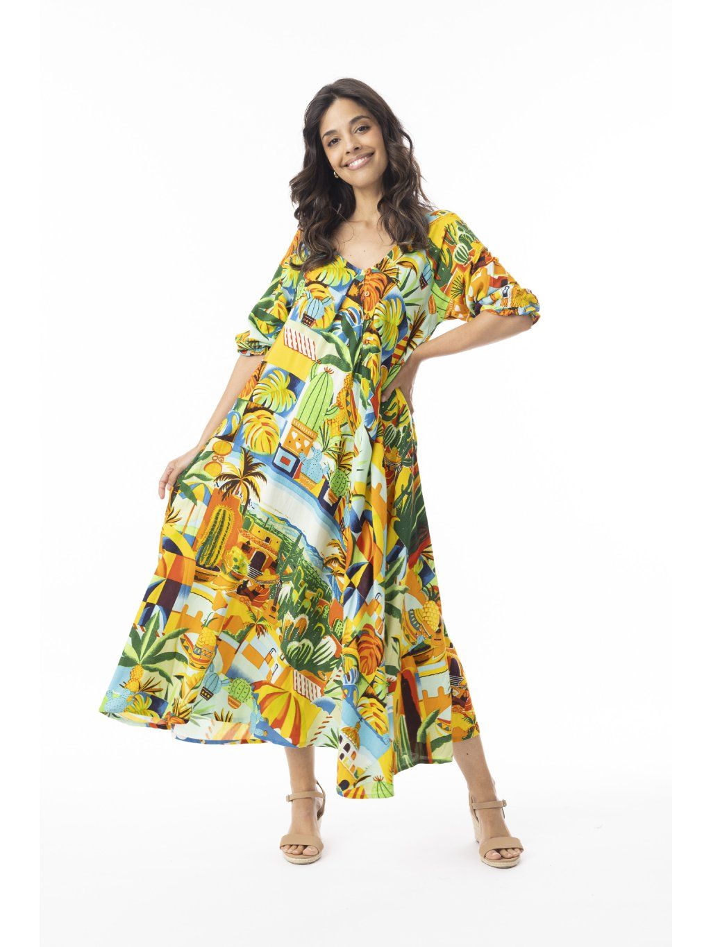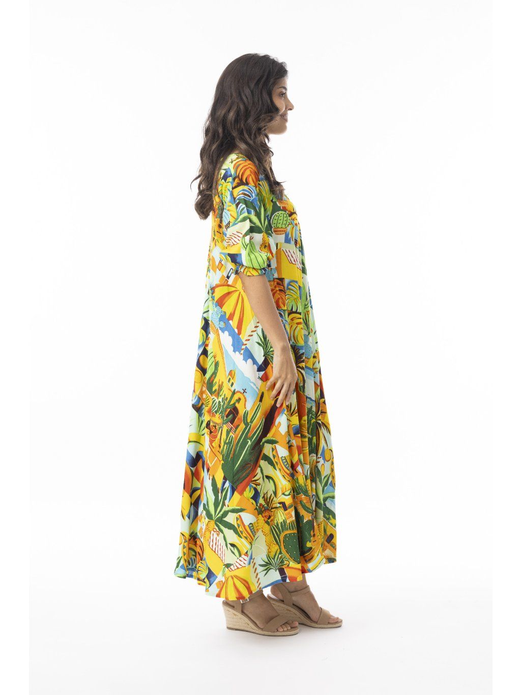 Maxi šaty z umělého hedvábí mají rozšířený, vzdušný střih, výstřih do V, kapsy a rukávy pod lokty. Šaty spojují pohodlí se sofistikovaností a veselý letní potisk dodává šatům hravost.