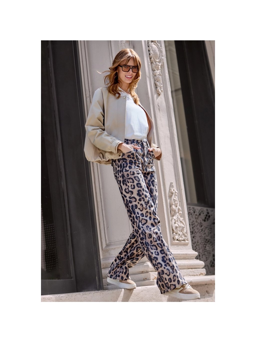 Široké kalhoty ze směsi bavlny s elastickým materiálem a leopardím vzorem – pohodlné a všestranné.