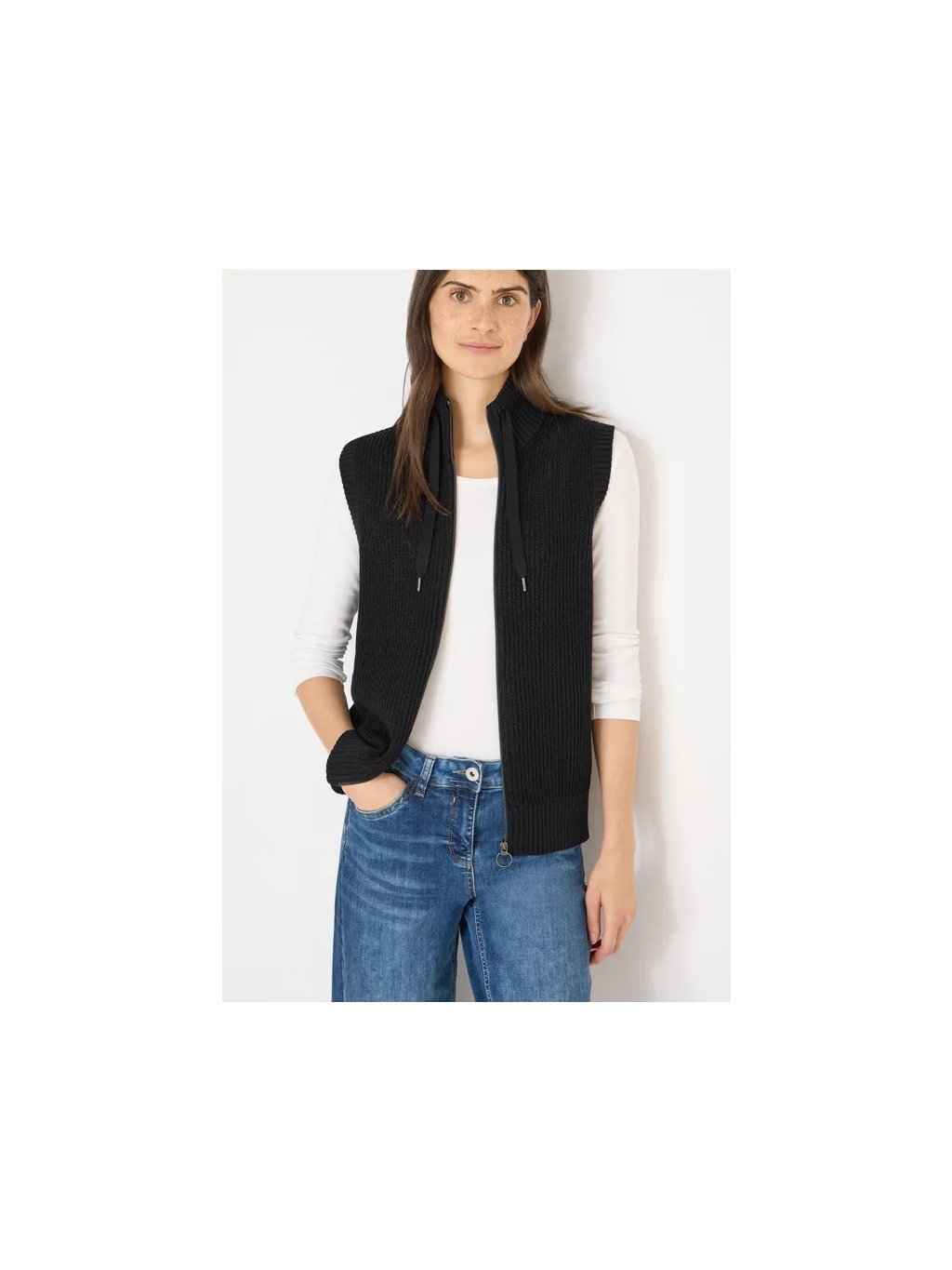 Tato dámská pletená vesta od značky CECIL má sportovní nádech díky stahovací šňůrce u stojáčku. Díky svému výjimečnému pohodlí je ideálním kouskem pro vrstvení vašeho outfitu.