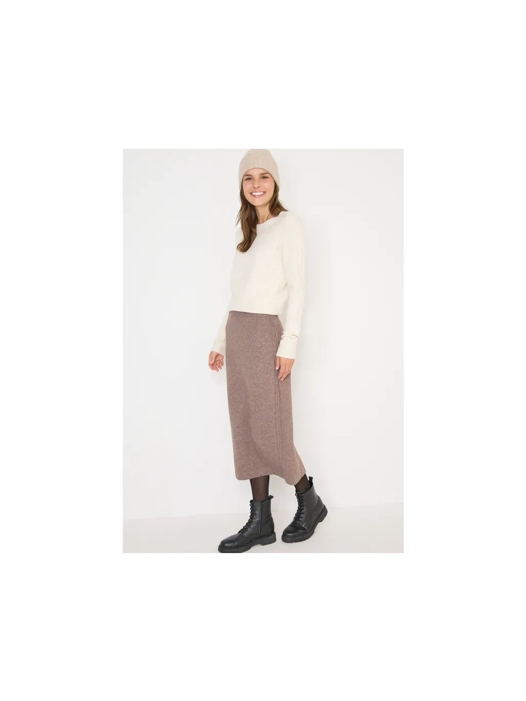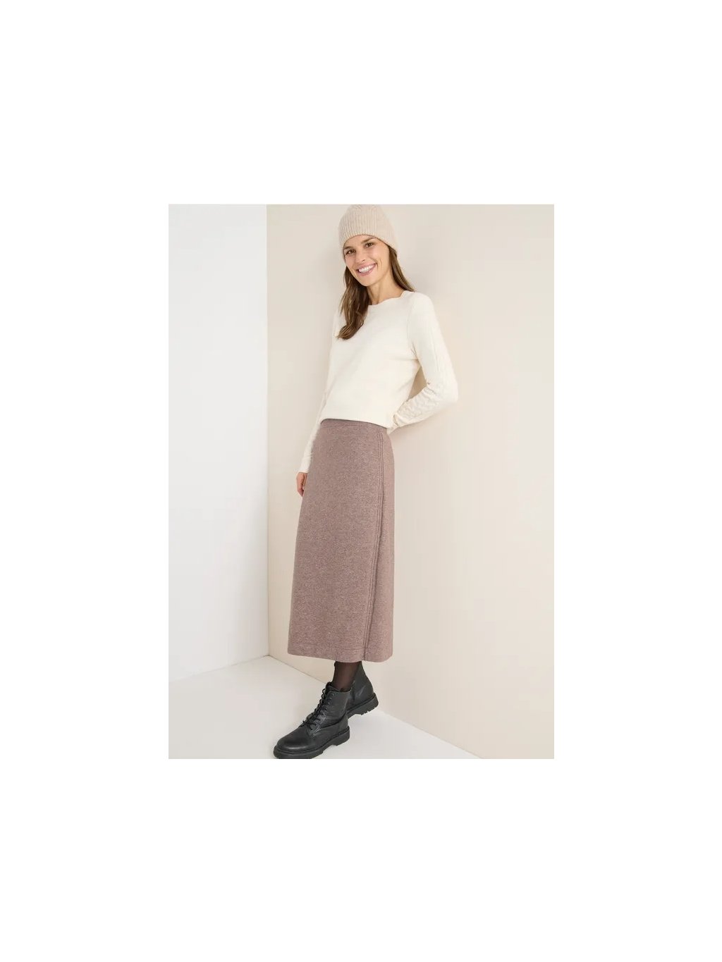 Tato dámská midi pletená sukně od CECIL se pyšní elastickým žebrovaným pasem a jemnými texturovanými pruhy po stranách. Rozparek na zádech umožňuje větší volnost pohybu a podtrhuje ženský vzhled. Měkká tkanina z ní dělá ideálního společníka pro pohodlné každodenní nošení.