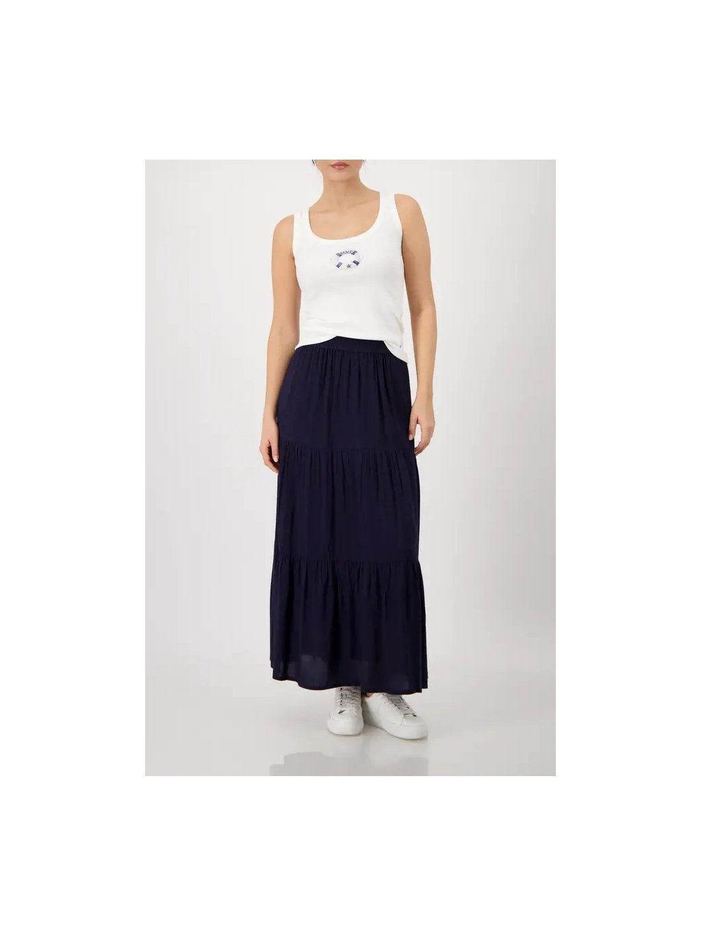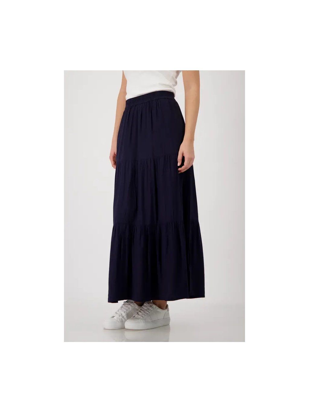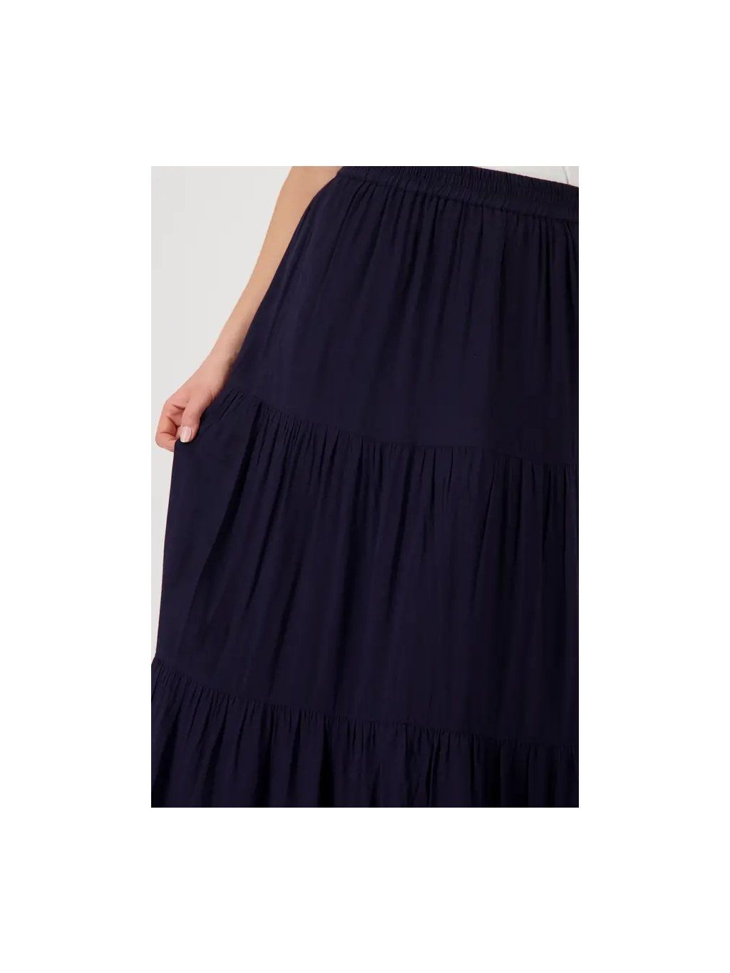 Tato nádherná, měkká na dotek, splývavá viskózová skládaná sukně maximální délky má elastický pas a spodní část pro optimální pohodlí. |
