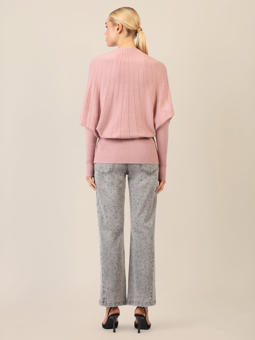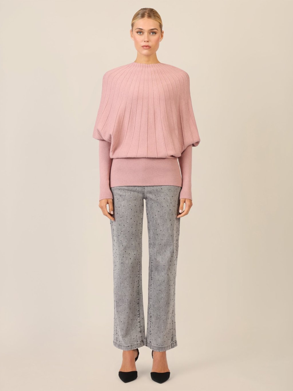 Tento svetr kombinuje maximální pohodlí se stylovou sofistikovaností. Je vyroben z měkké směsi viskózy a kašmíru a je pleten horizontálně. Jeho integrované lemování dodává designu texturu a zajímavost. Netopýří rukávy plynule přecházejí do dlouhých, úzkých manžet a vytvářejí tak moderní a uvolněný vzhled. Pletený rolák vás udrží v teple a dodá elegantní nádech. Design je doplněn širokým lemem pro perfektní střih. Délka: přibližně 68 cm v nošeném stavu.