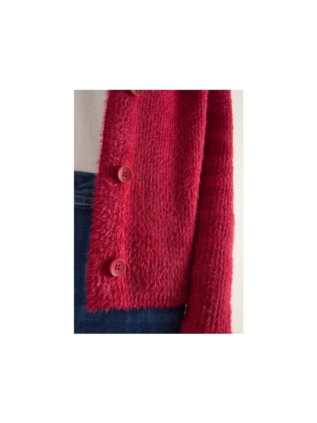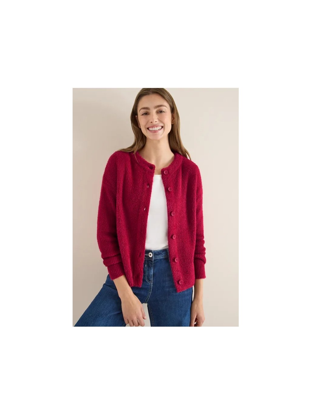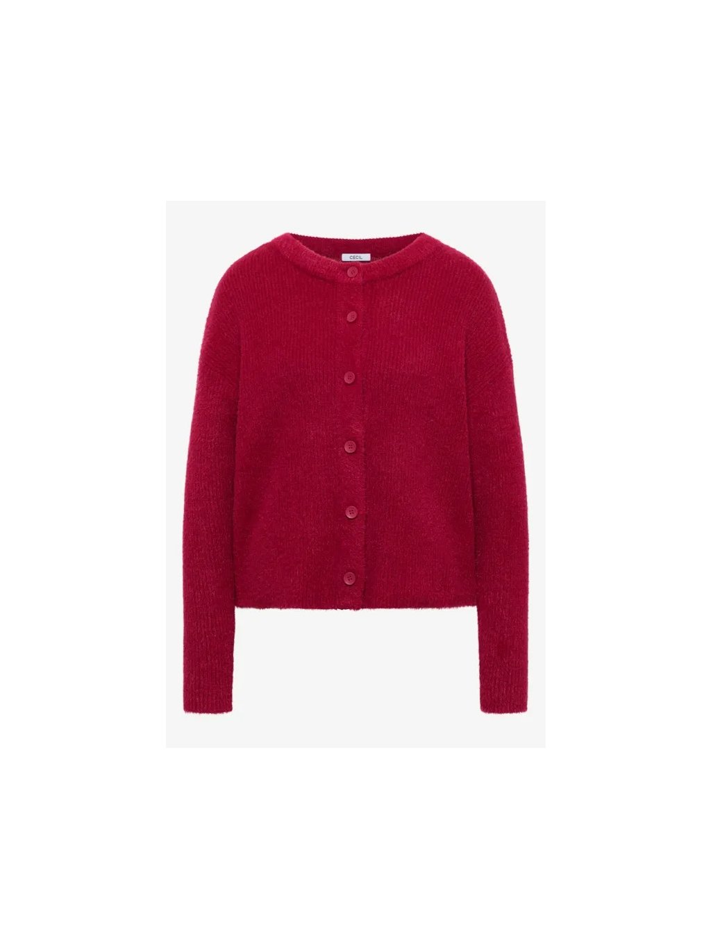Tento dámský žebrovaný kardigan od CECIL zaujme svou měkkou péřovou přízí a pohodlným střihem. Kulatý výstřih a zapínání na knoflíky dodávají kardiganu klasický nádech. Ideální pro váš nekomplikovaný a pohodlný vzhled s módní texturou.