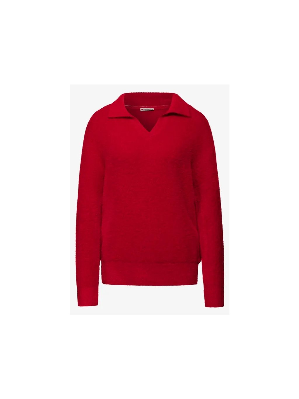 Dámský svetr z péřové příze od Street One kombinuje sportovní vzhled s útulným pocitem. Polo límec dodává stylový akcent, zatímco nadýchaná jednobarevná látka zajišťuje pohodlí. Stylový doplněk pro ženský každodenní outfit.