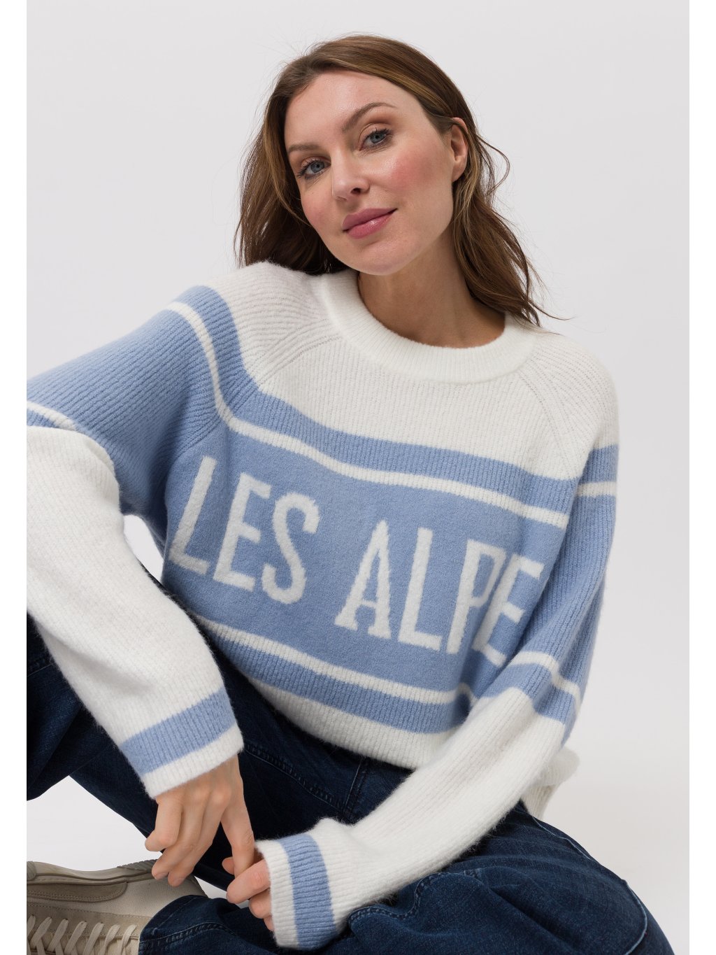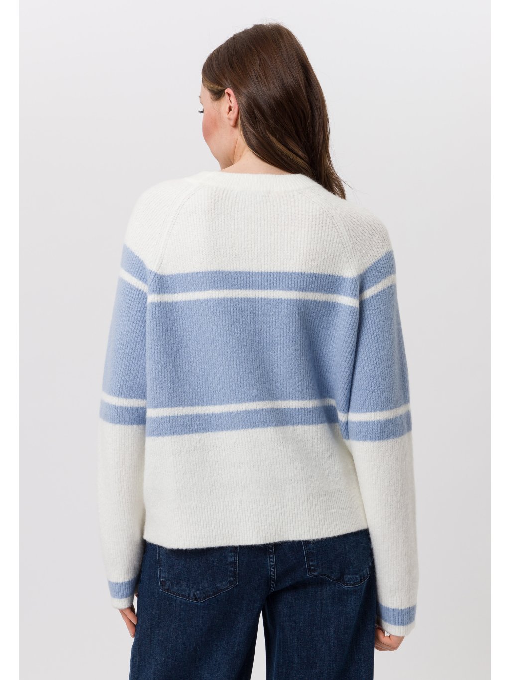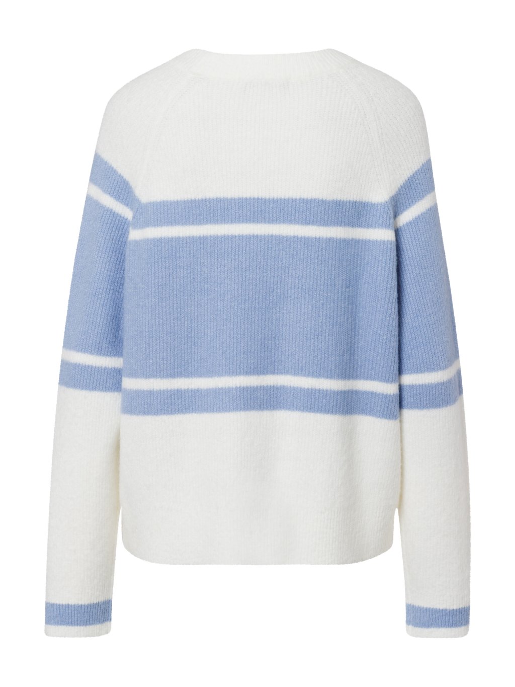Svetr z aktuální kolekce z hebkého materiálu s příměsí vlny má kulatý výstřih a vsazené rukávy. Modrá a bílá barva vytváří příjemný kontrast, takže svetr působí mladistvým a svěžím dojmem.