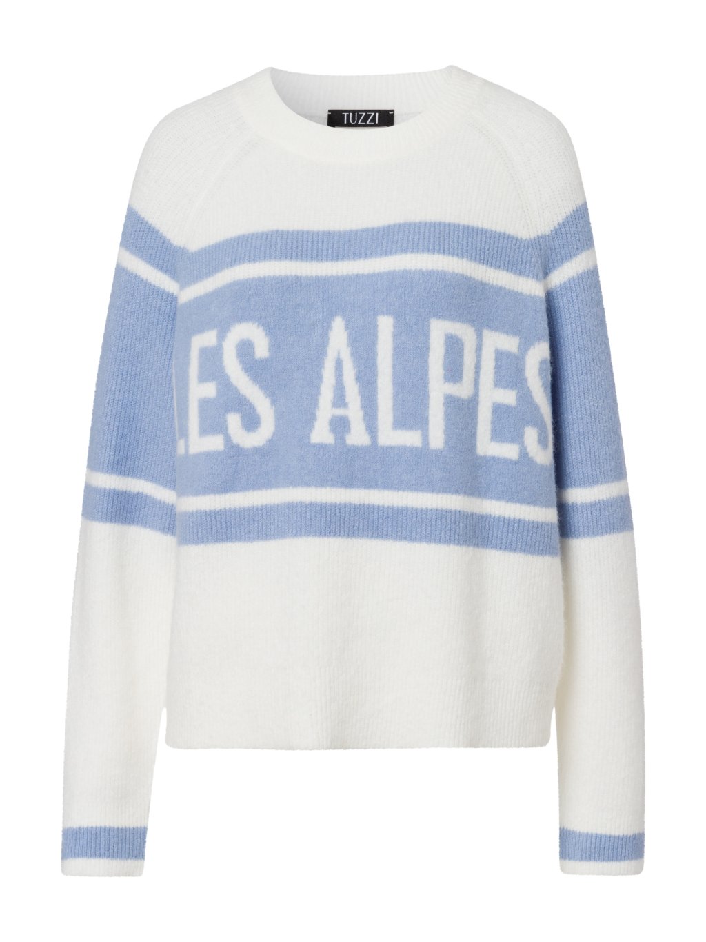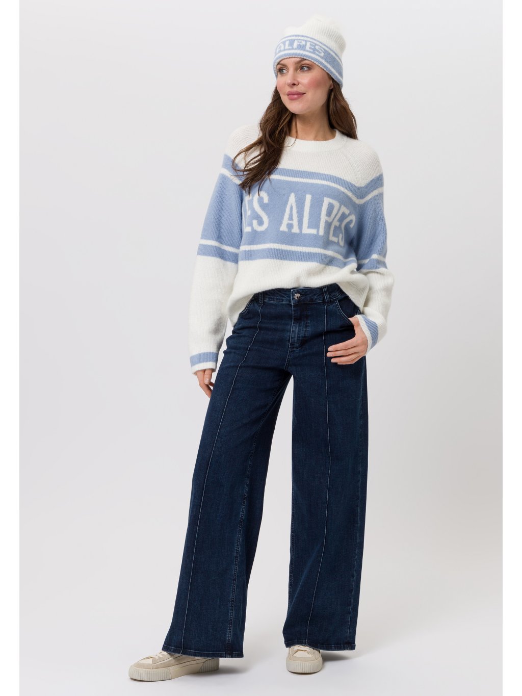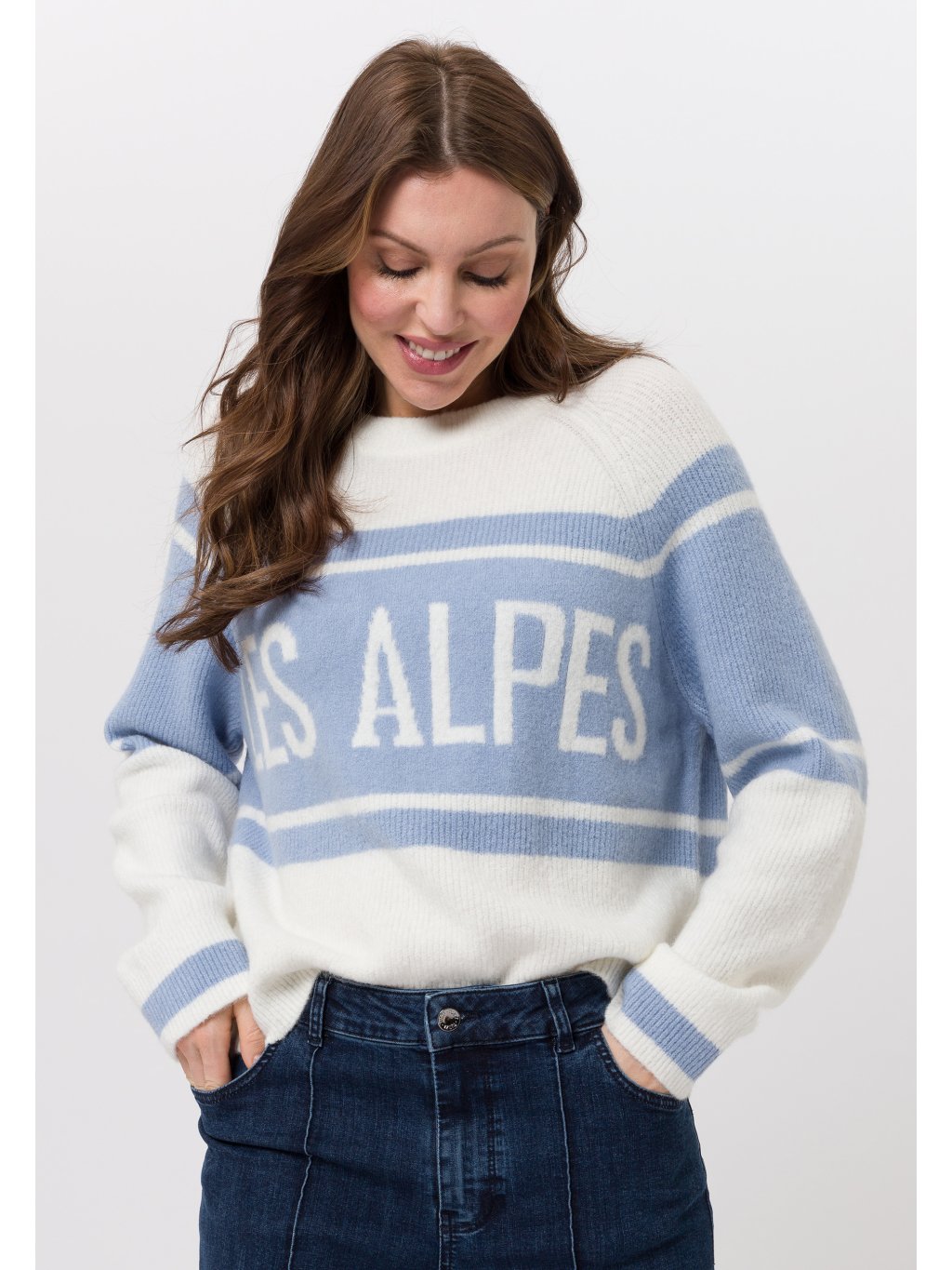 Svetr z aktuální kolekce z hebkého materiálu s příměsí vlny má kulatý výstřih a vsazené rukávy. Modrá a bílá barva vytváří příjemný kontrast, takže svetr působí mladistvým a svěžím dojmem.