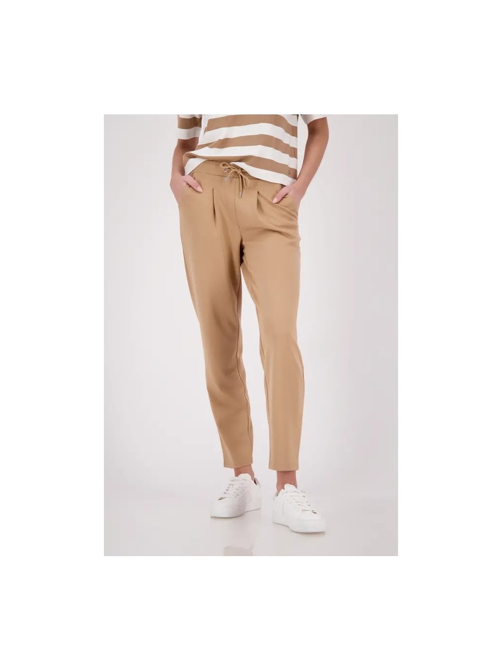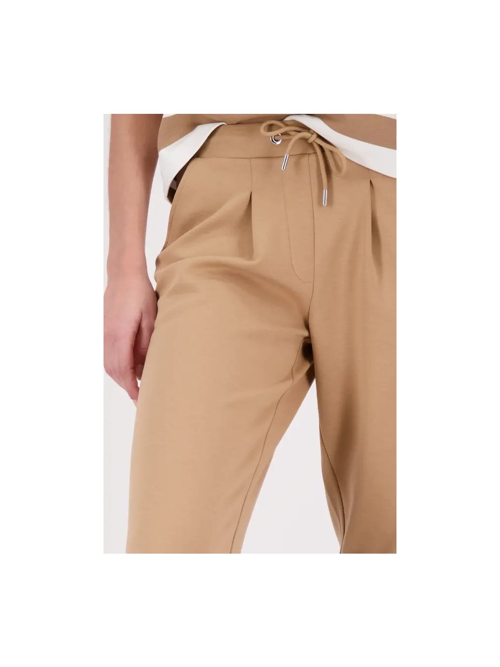 Tepláky se stahovací šňůrkou jsou vyrobeny ze splývavé směsi viskózy a díky elastickému materiálu jsou obzvláště pohodlné.