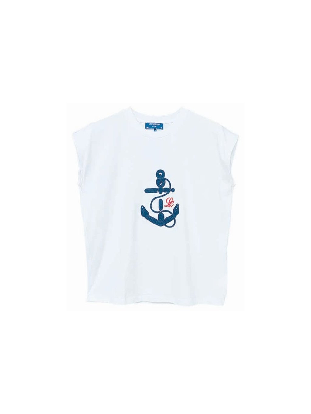 Tričko s kulatým výstřihem, bez rukávů.
