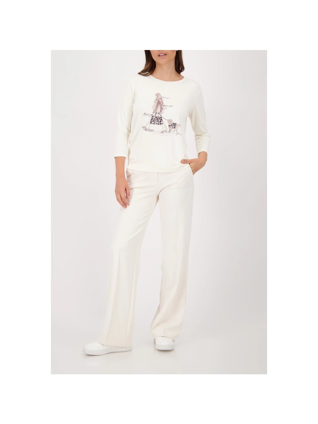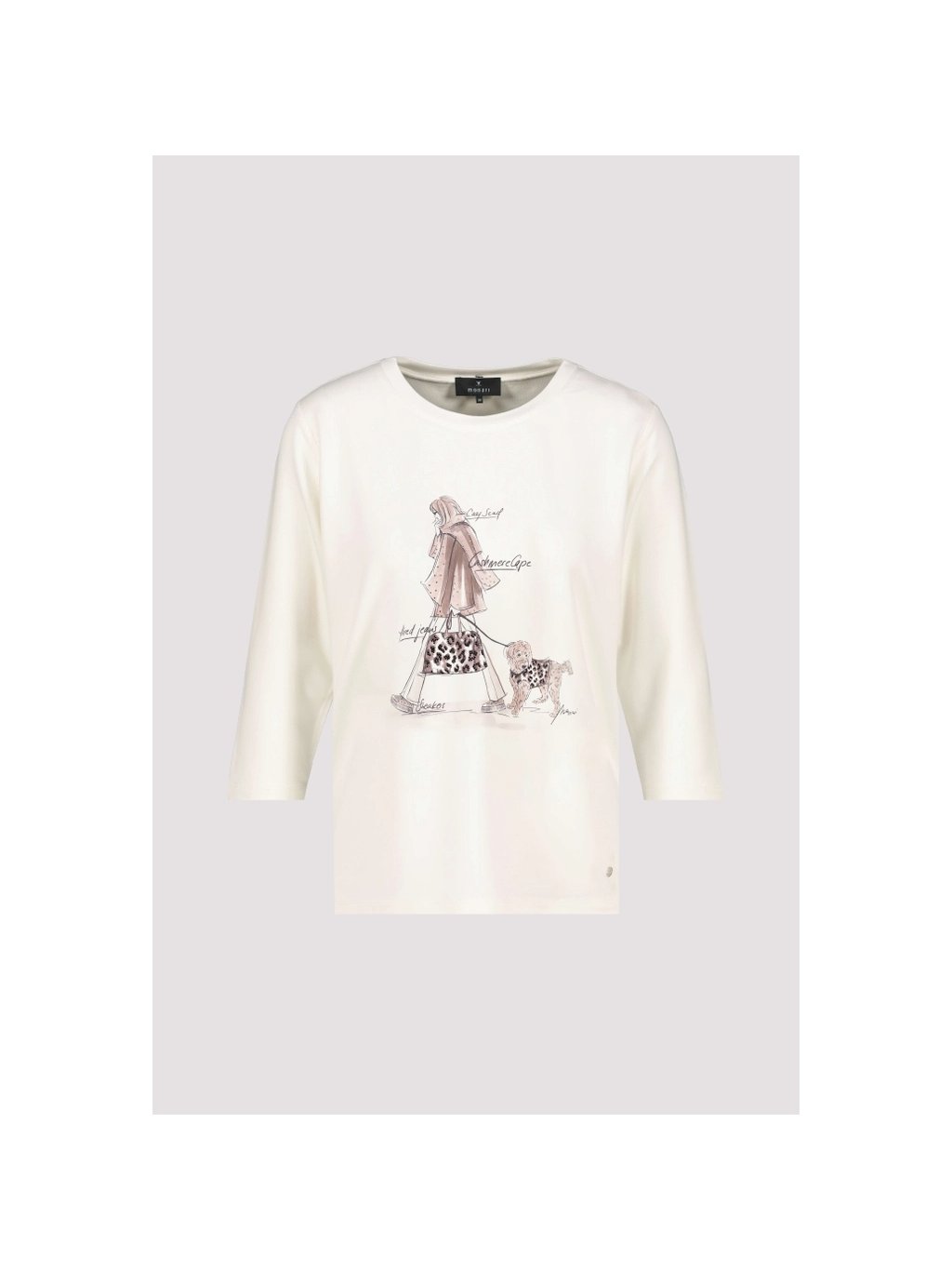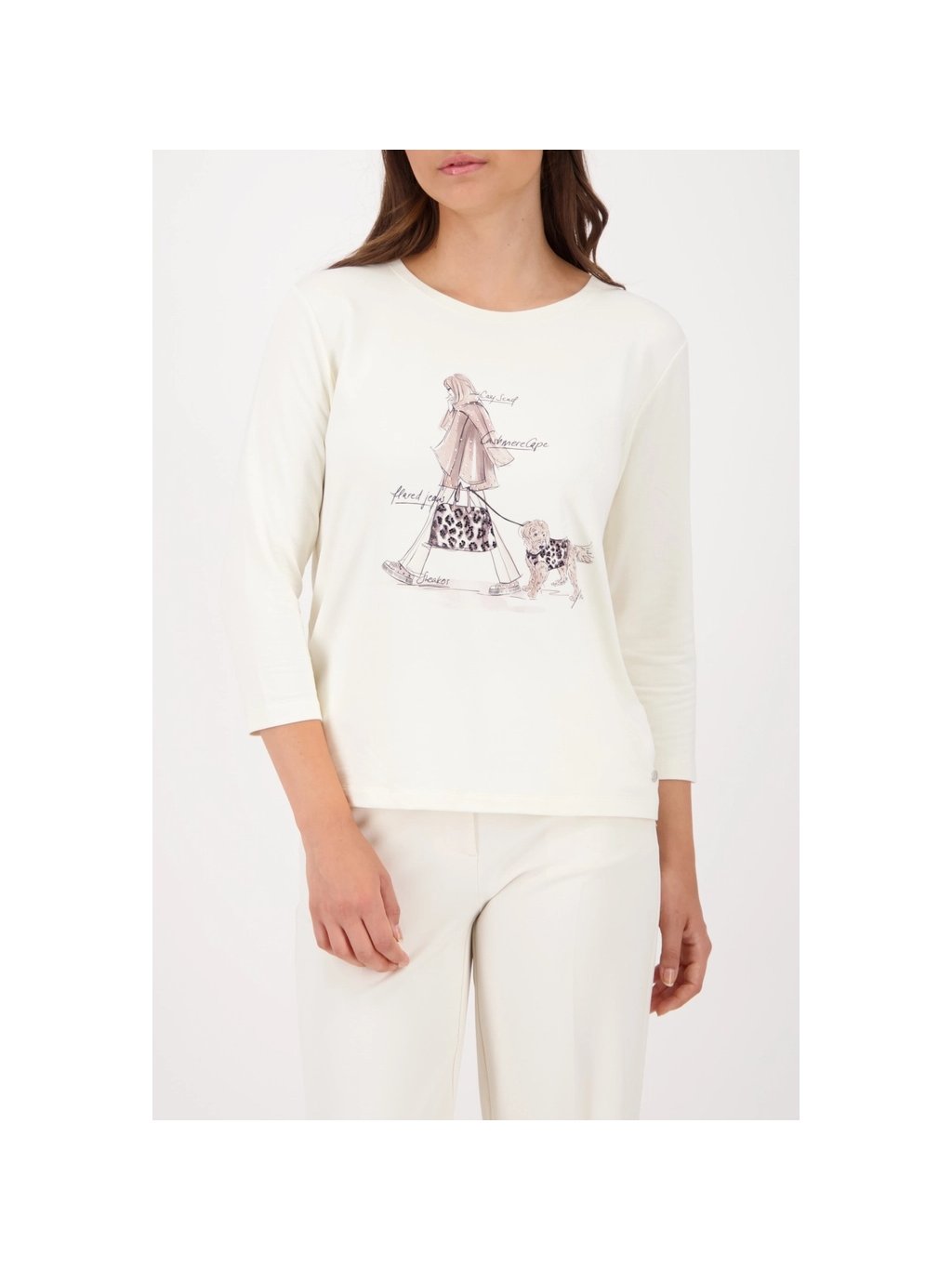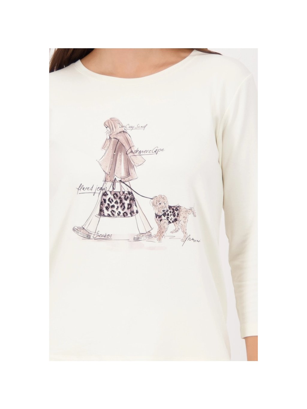 Elegantní tričko z volné viskózy, zdobené potiskem ženy a psa s kamínky, ideální pro ženy, které dbají na styl.