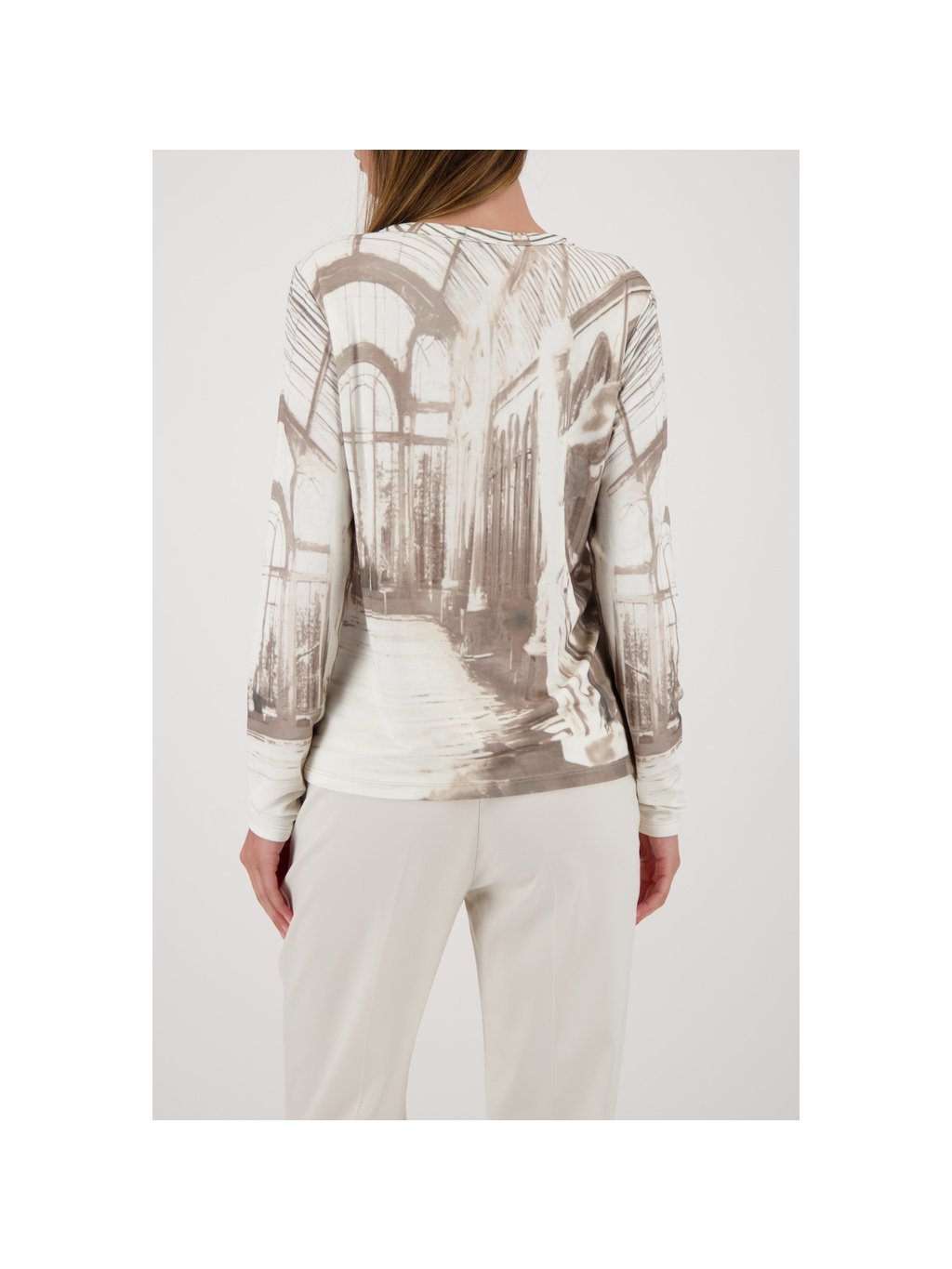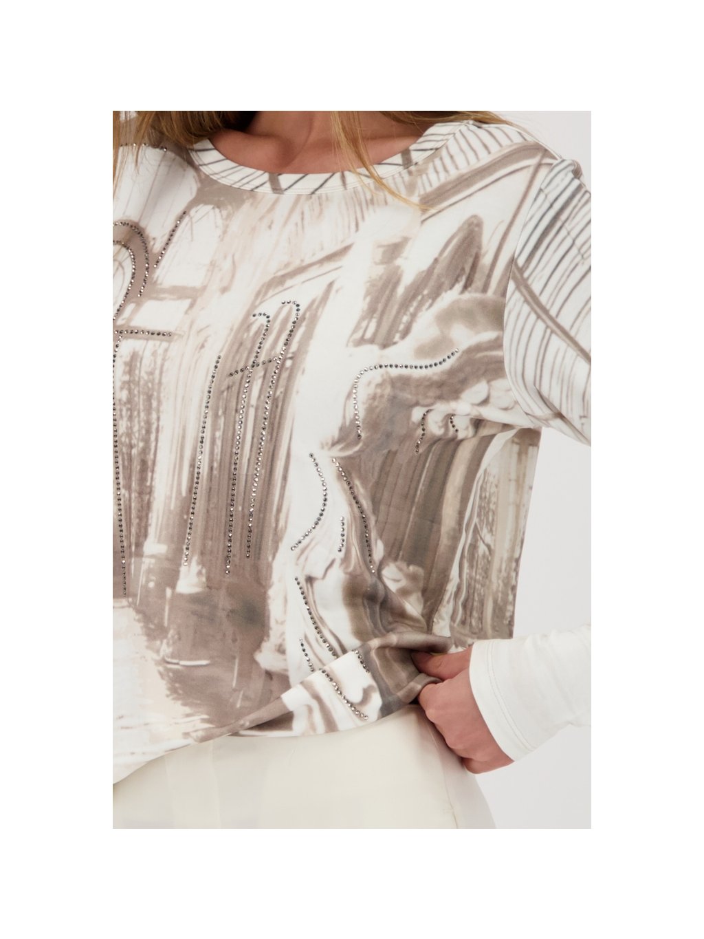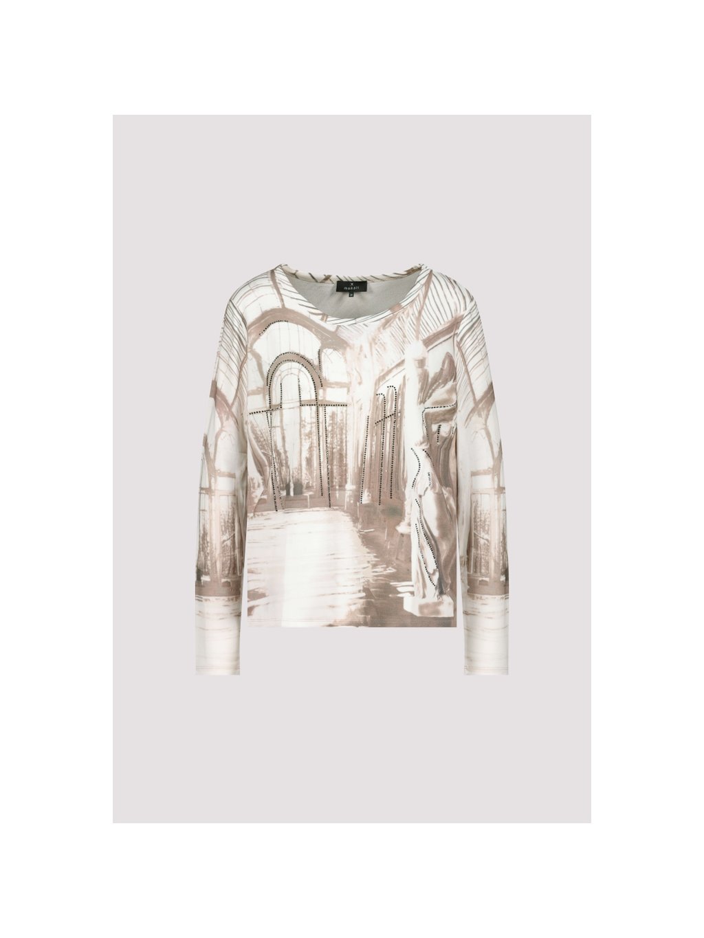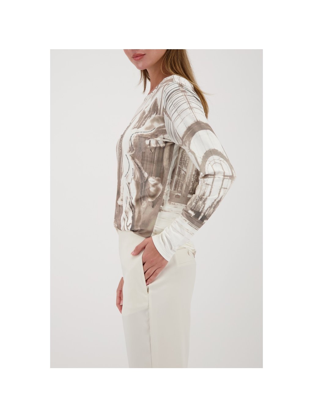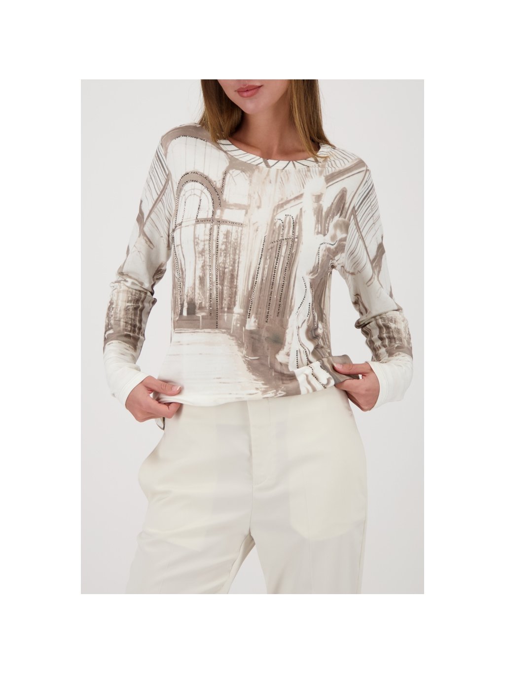 Elegantní halenka s dlouhým rukávem ze splývavé viskózy, zdobená kamínky a uměleckým potiskem s motivem galerie pro ženy, které dbají na styl.