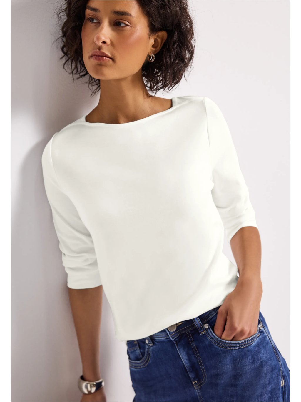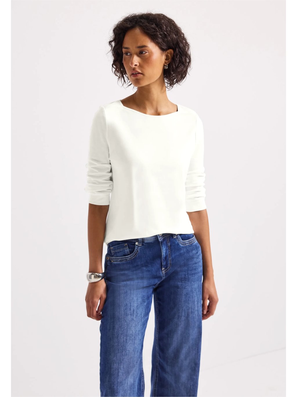 Všestranná klasika do vašeho šatníku: Tato základní dámská košile od Street One má lodičkový výstřih a tříčtvrteční rukávy s manžetami. Je vyrobena z čisté bavlny a nabízí pohodlný střih. Díky jednoduchému vzhledu je ideální pro každý den.