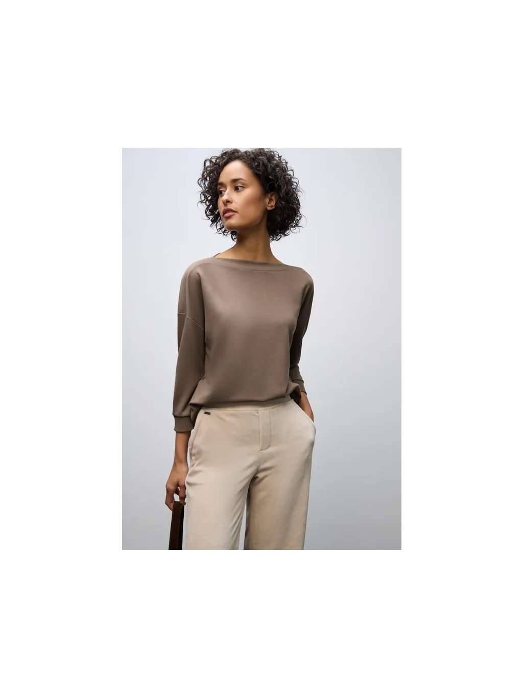 - lodičkový výstřih s žebrovaným detailem
