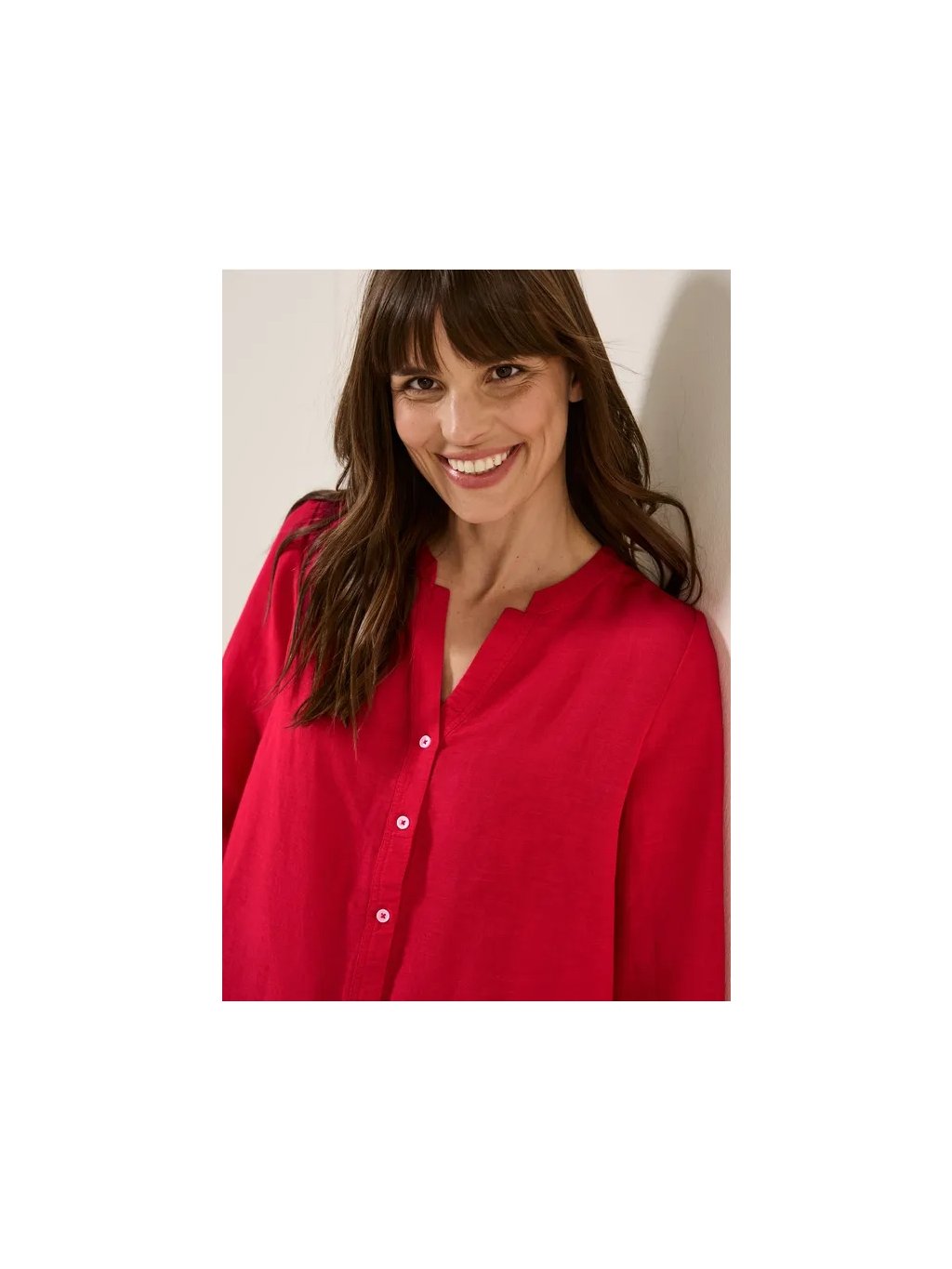 Tato letní halenka od CECIL pro ženy zaujme svým rozparkem a zapínáním na knoflíky po celé délce. 3/4 rukávy s manžetami a knoflíkem podtrhují uvolněný vzhled, zatímco zaoblený lem nabízí lichotivý střih. Příjemná směs lnu a viskózy z ní dělá ideálního společníka pro teplé dny.