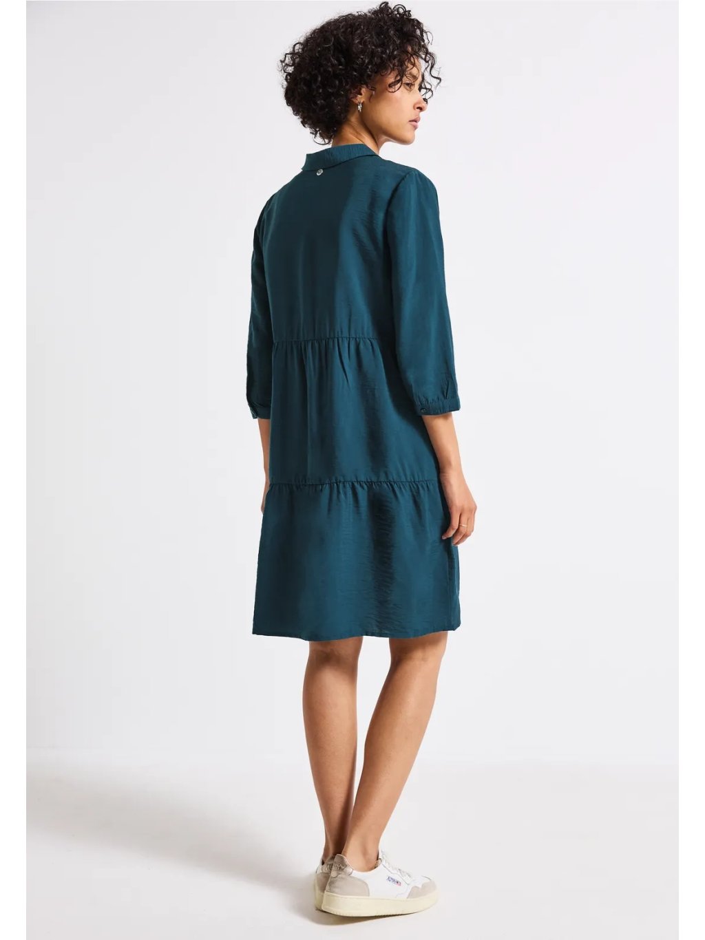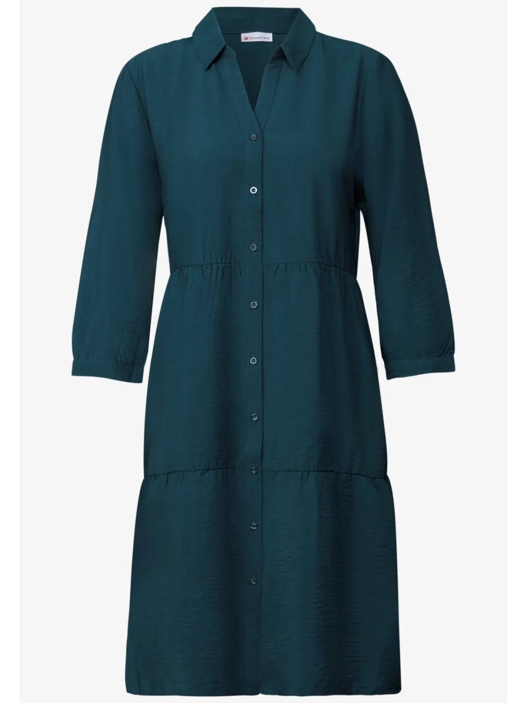 Ideální pro teplé dny: Tyto letní tunikové šaty od Street One pro ženy jsou skutečným univerzálním kouskem pro ženy. Lehká směs viskózy je příjemná na dotek, zatímco volány, košilový límec a zapínání na knoflíky dodávají šatům hravý a zároveň moderní vzhled. Tříčtvrteční rukávy s manžetami zdůrazňují vzdušnou siluetu.