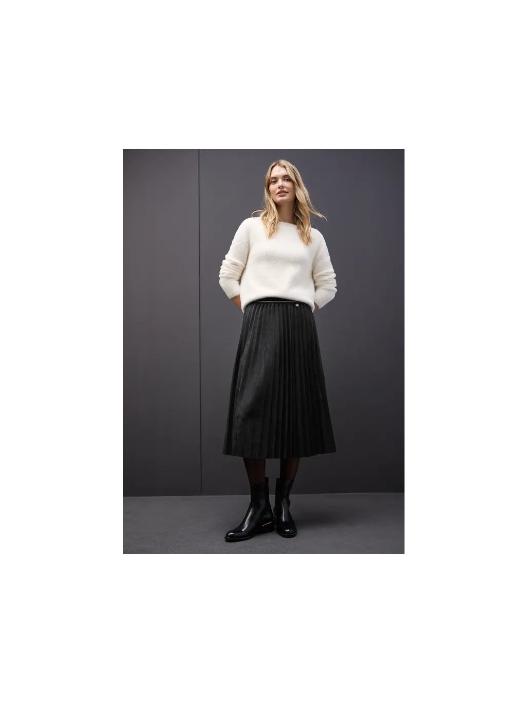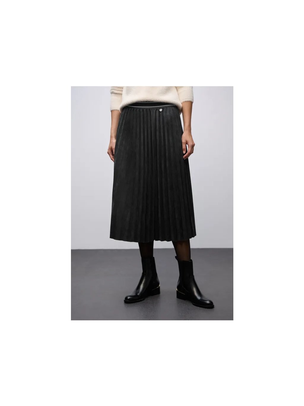 Dámská skládaná sukně Street One se vyznačuje měkkým, splývavým velurovým materiálem a lichotivou midi délkou. Elastický pas zajišťuje pohodlné nošení a ženské splývání. Ideální pro stylové outfity s nádechem elegance – ať už pro každodenní nošení nebo pro zvláštní příležitosti.