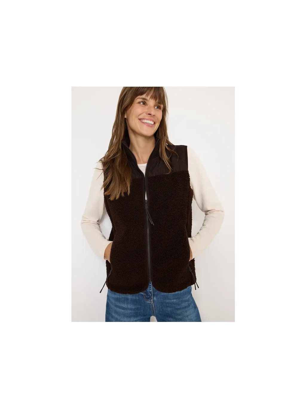 Tato dámská vesta CECIL kombinuje měkkou plyšovou látku s moderní softshellovou látkou v prošívaném designu. Díky zipům, stojáčkům a bočním kapsám na zip je funkčním doplňkem pro ležérní vrstvené outfity. Ideální pro přechodná roční období – pohodlná, lehká a stylová.