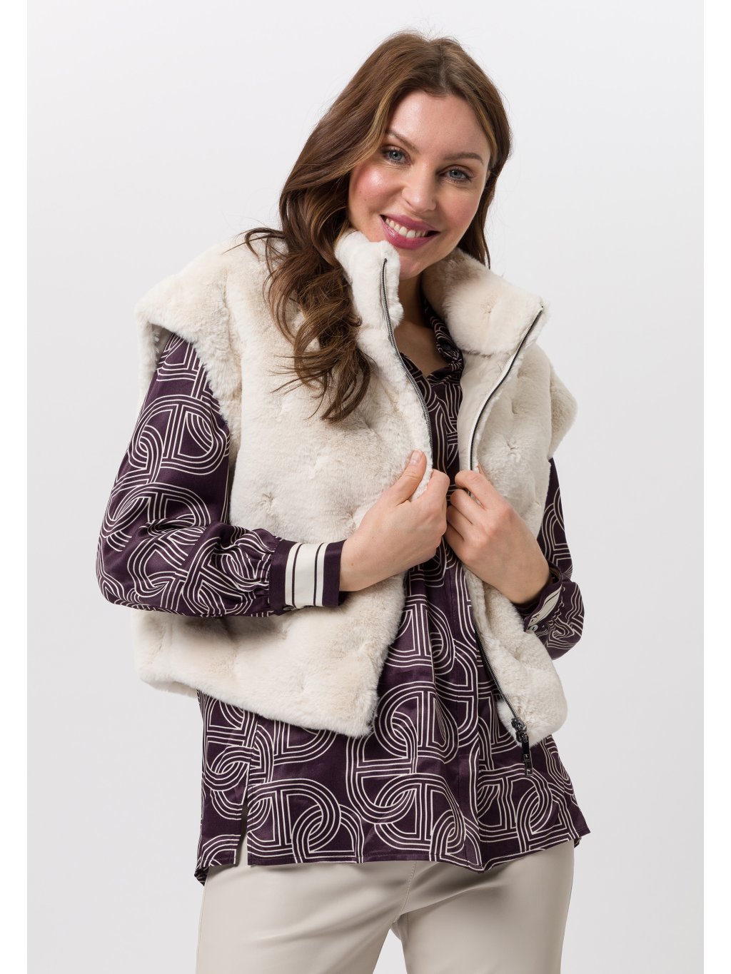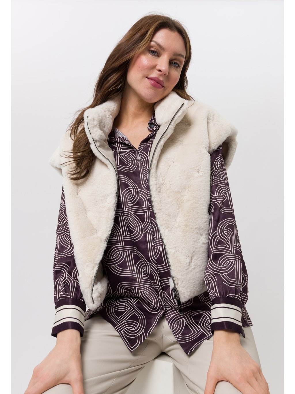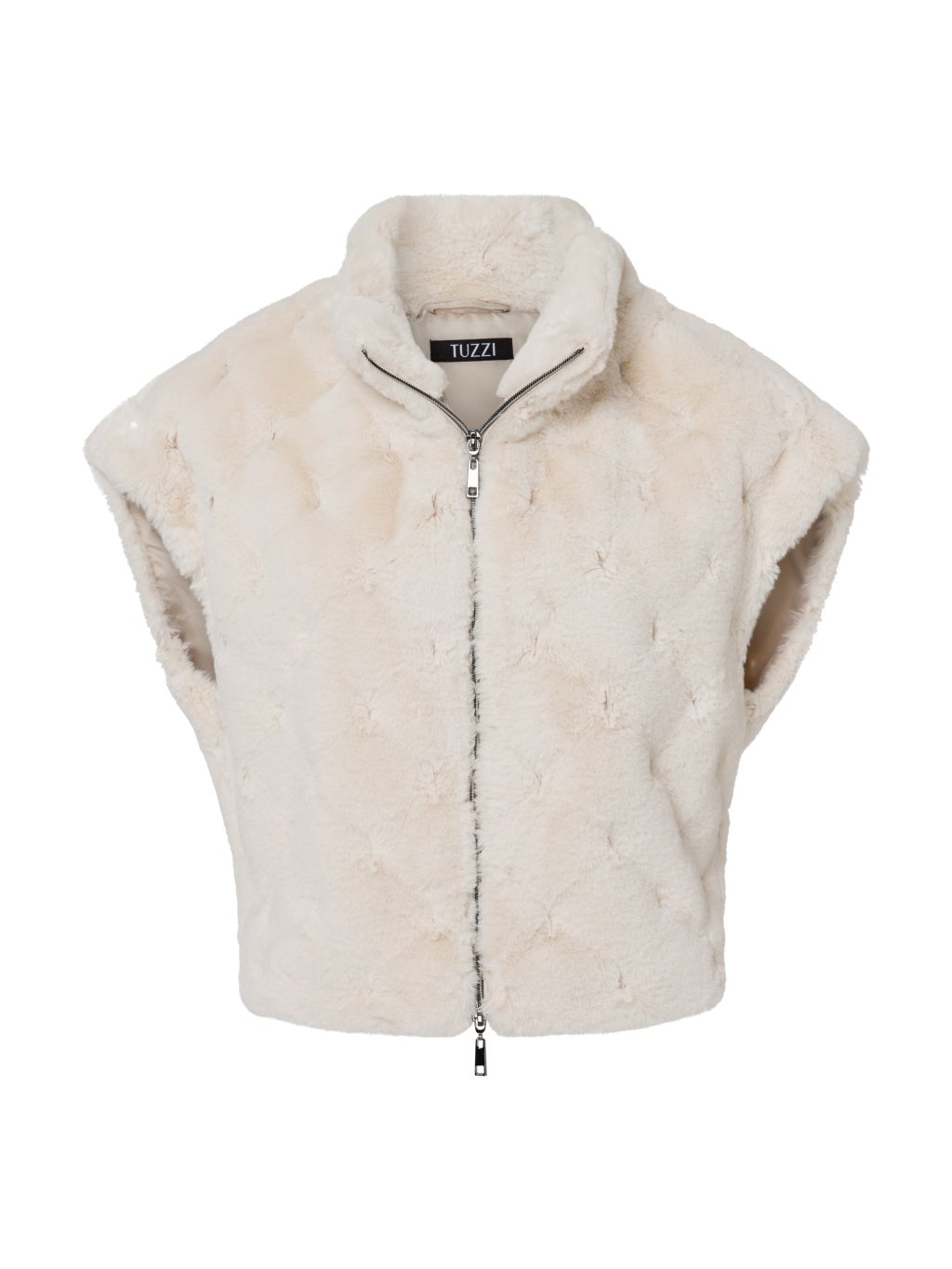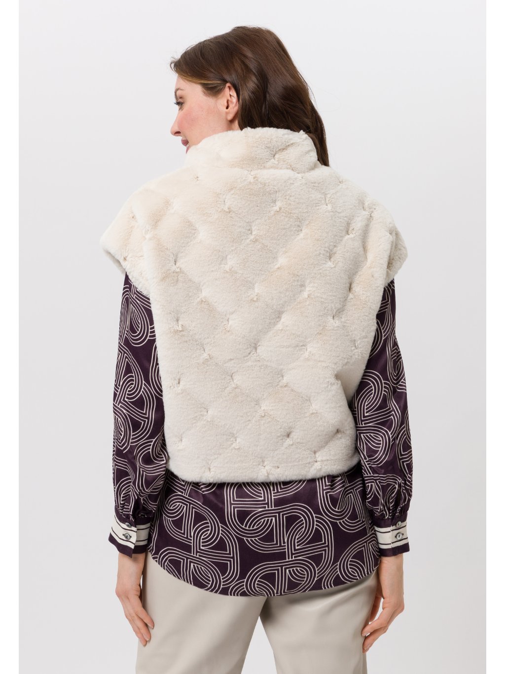Elegantní kožešinová vesta zaujme svým obzvláště měkkým materiálem s prošitím. Vysoký stojáček a dvoucestný zip zajišťují pohodlí a flexibilitu. Hřejivá vesta perfektně padne a je ideálním kouskem pro chladné dny.